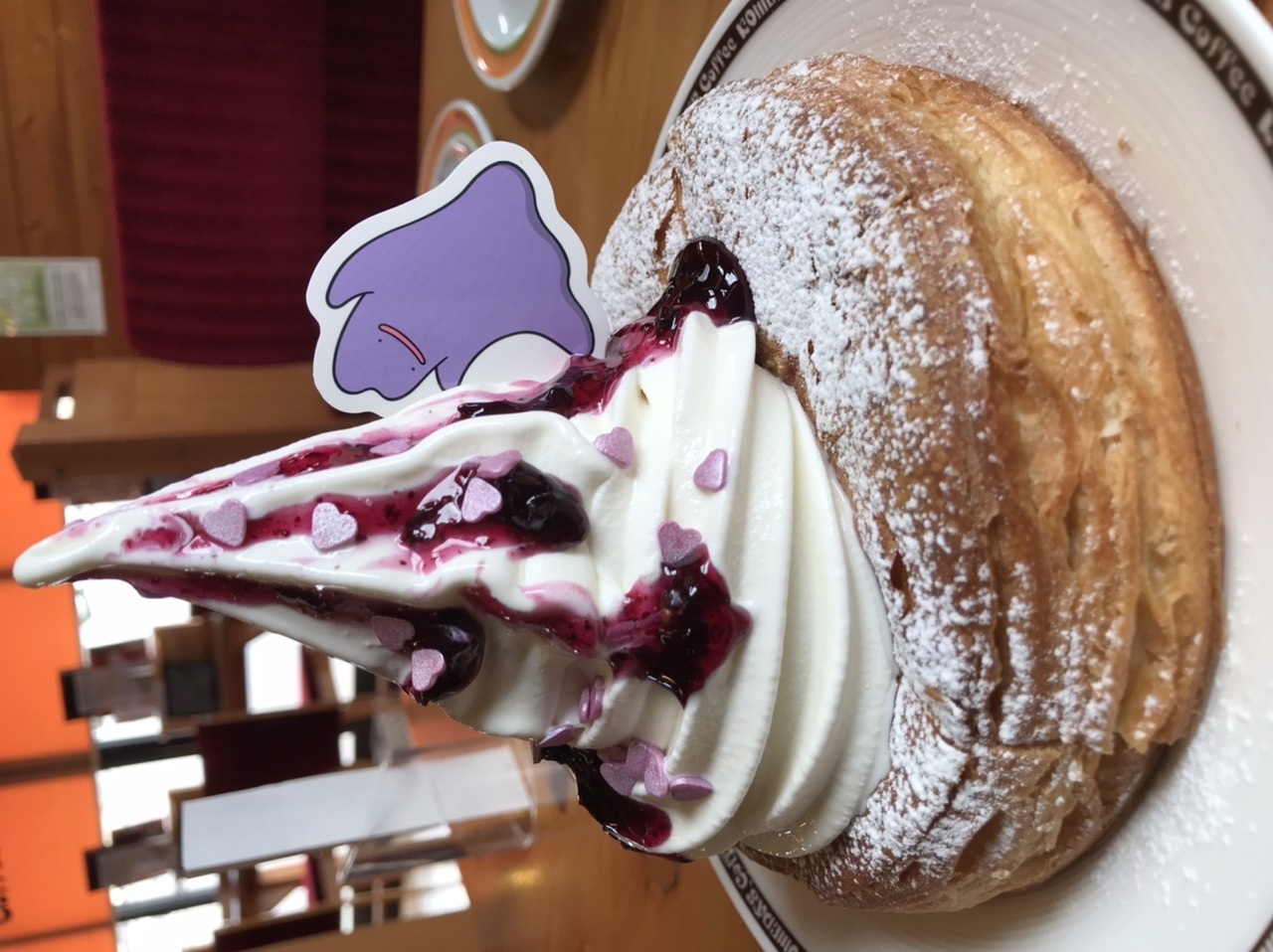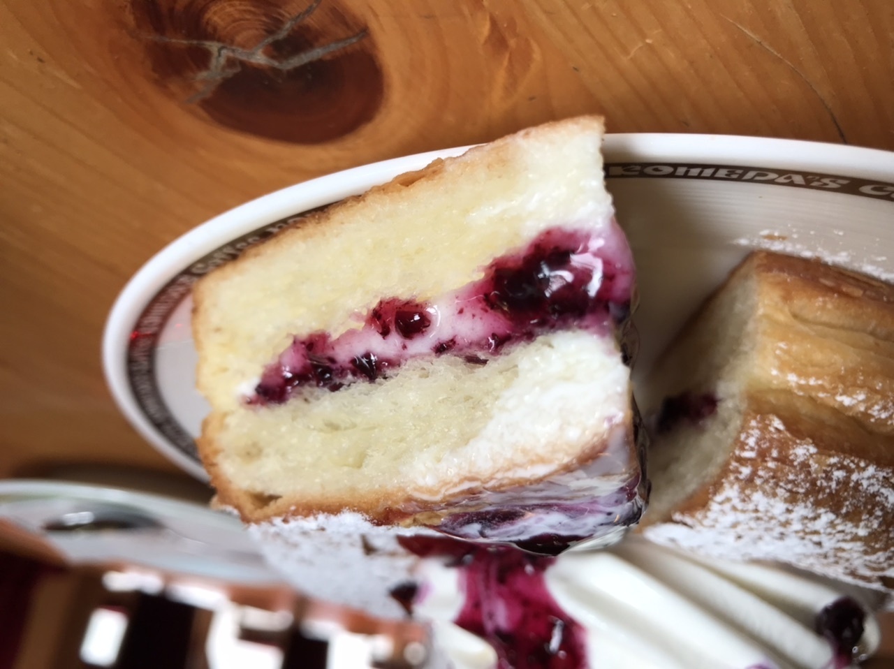 シロノワール ブルーベリーフロマージュも間にクリームが挟まっている断面😍