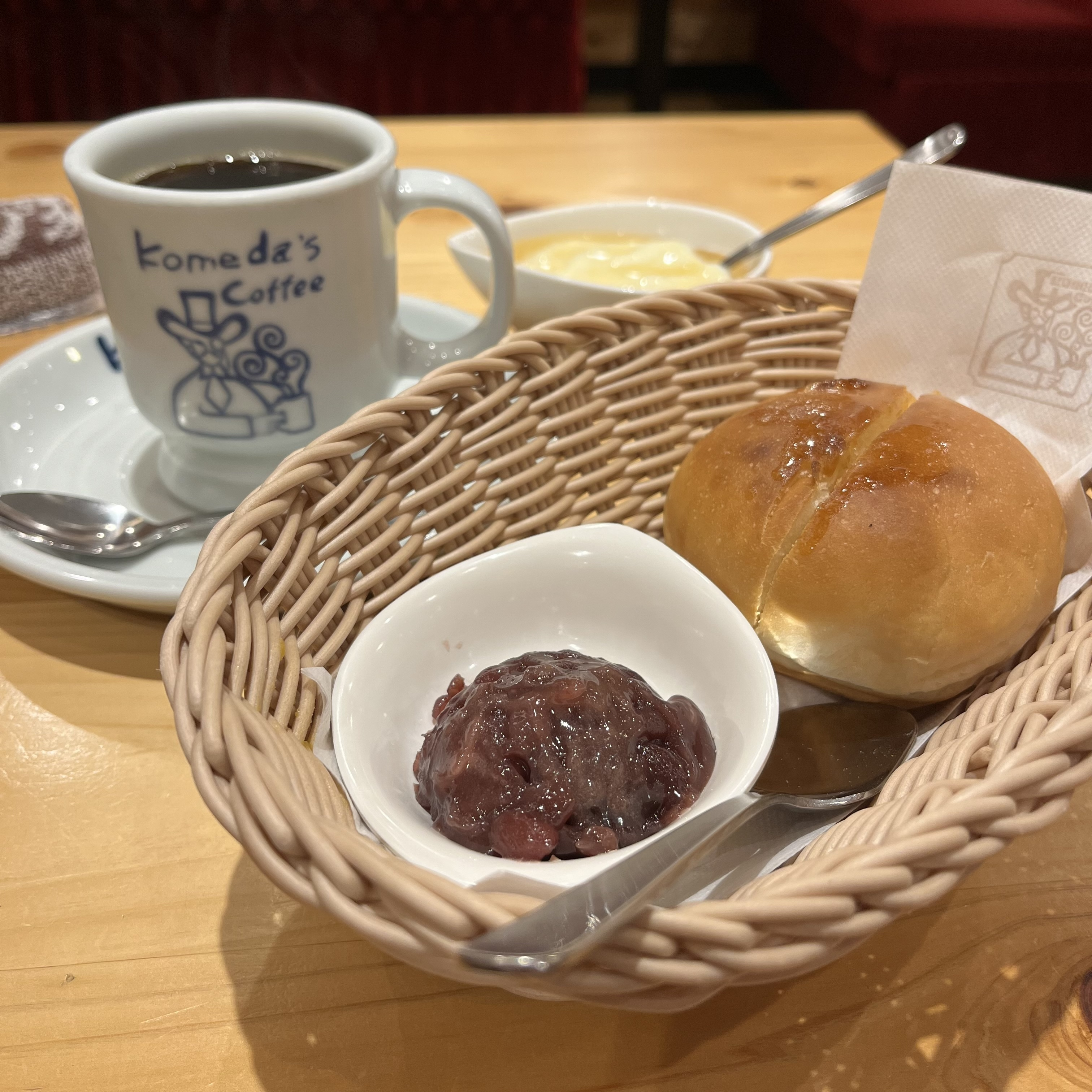 バター染み染みローブパンとおぐらあんの甘さがコメダブレンドと一緒に沁み渡りますね😋💕。
