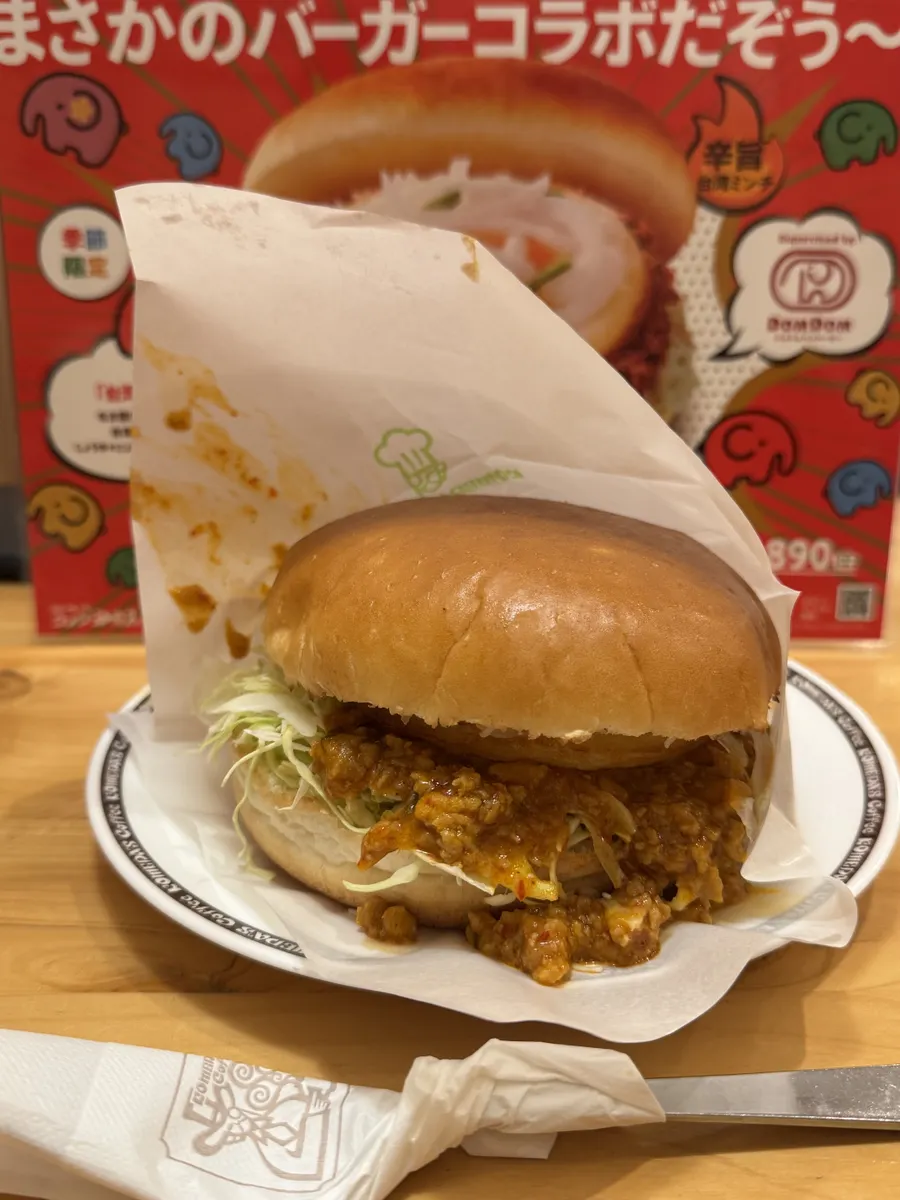 ド迫力な中身に溢れるたっぷりミンチ肉が流石コメダ仕様ですね😅