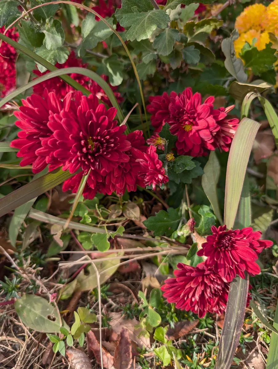ららぽーとに行く途中で 紅い菊が咲いていました