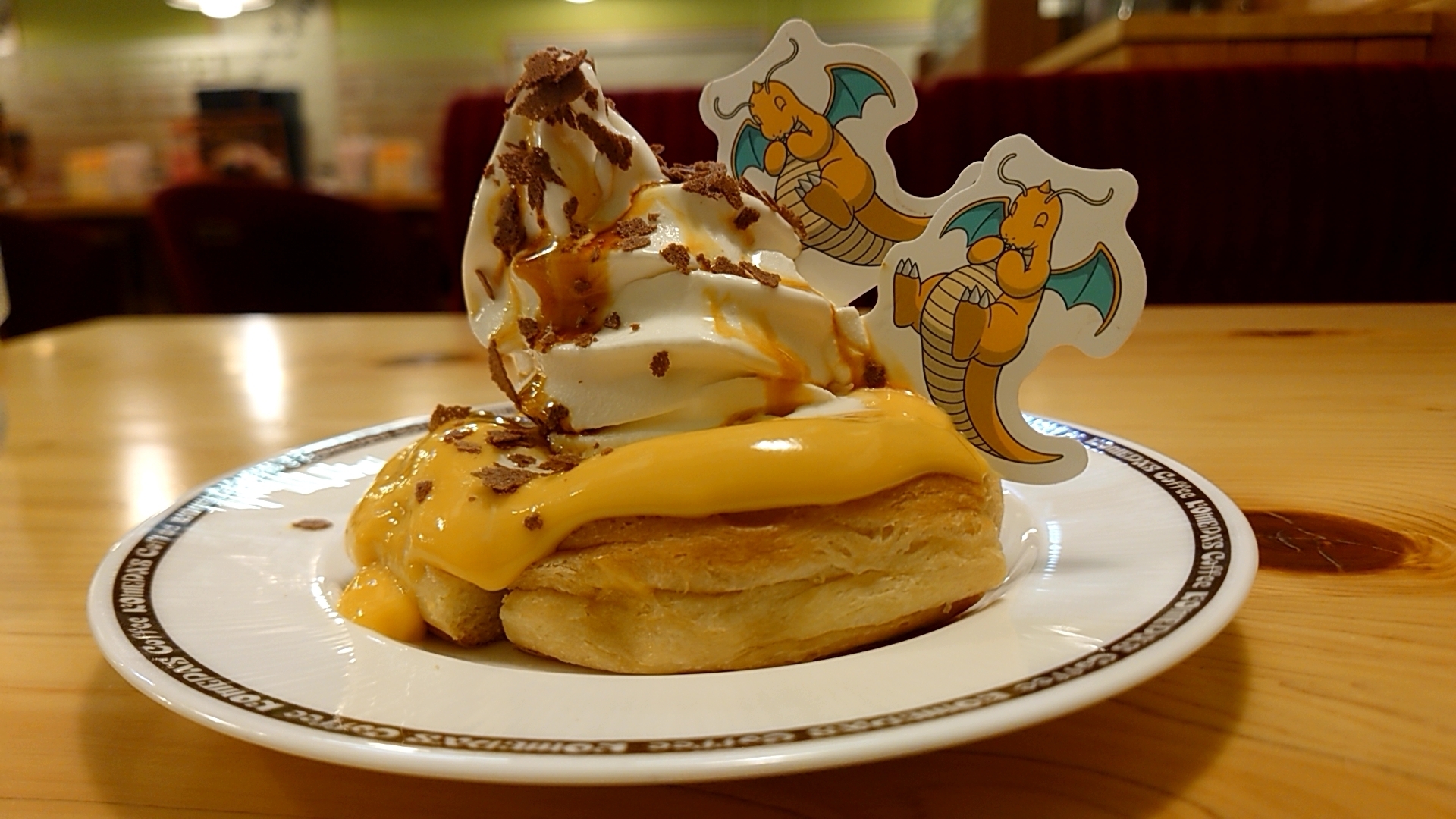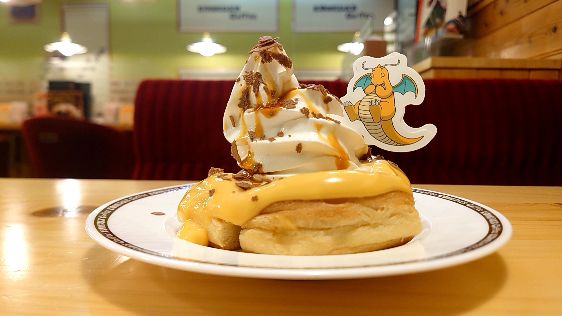 港栄店で☕️アメリカンのたっぷりサイズ&ポテチキ&カイリューのシロノワールカスタードプリン美味しそうだぎゃー🤤✨