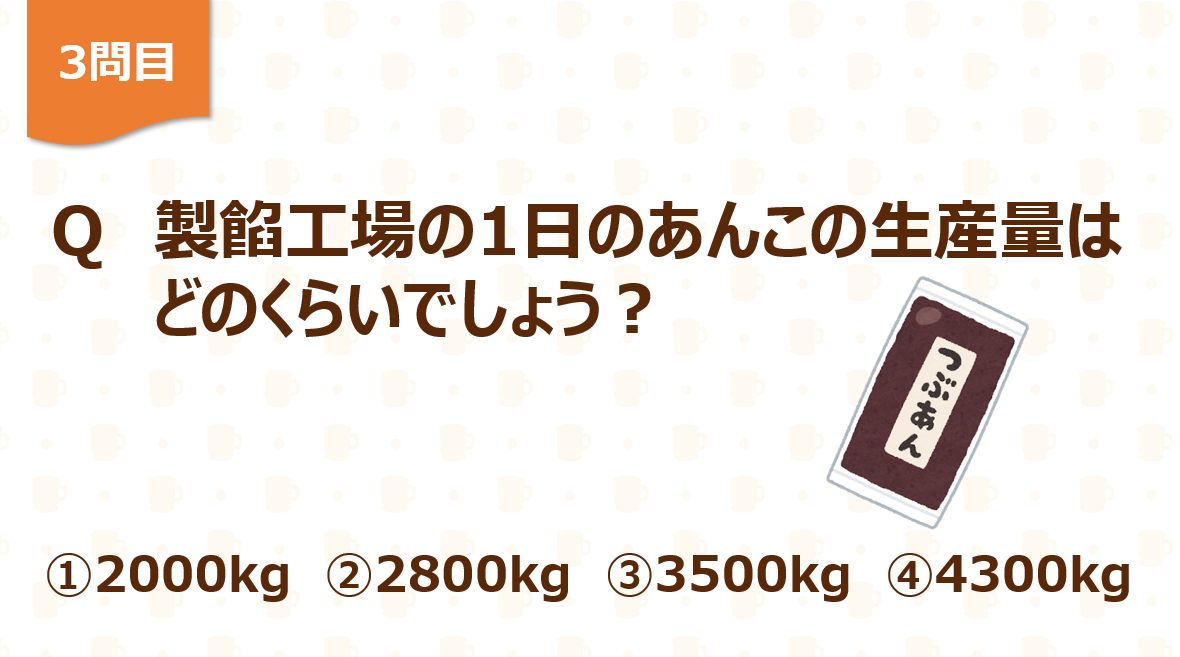 コメダの製餡工場は全国にひとつしかなく、全国のコメダ珈琲店の小倉あんを作っているので、そのことを考えると…?というヒントでみなさんに考えていただきました。