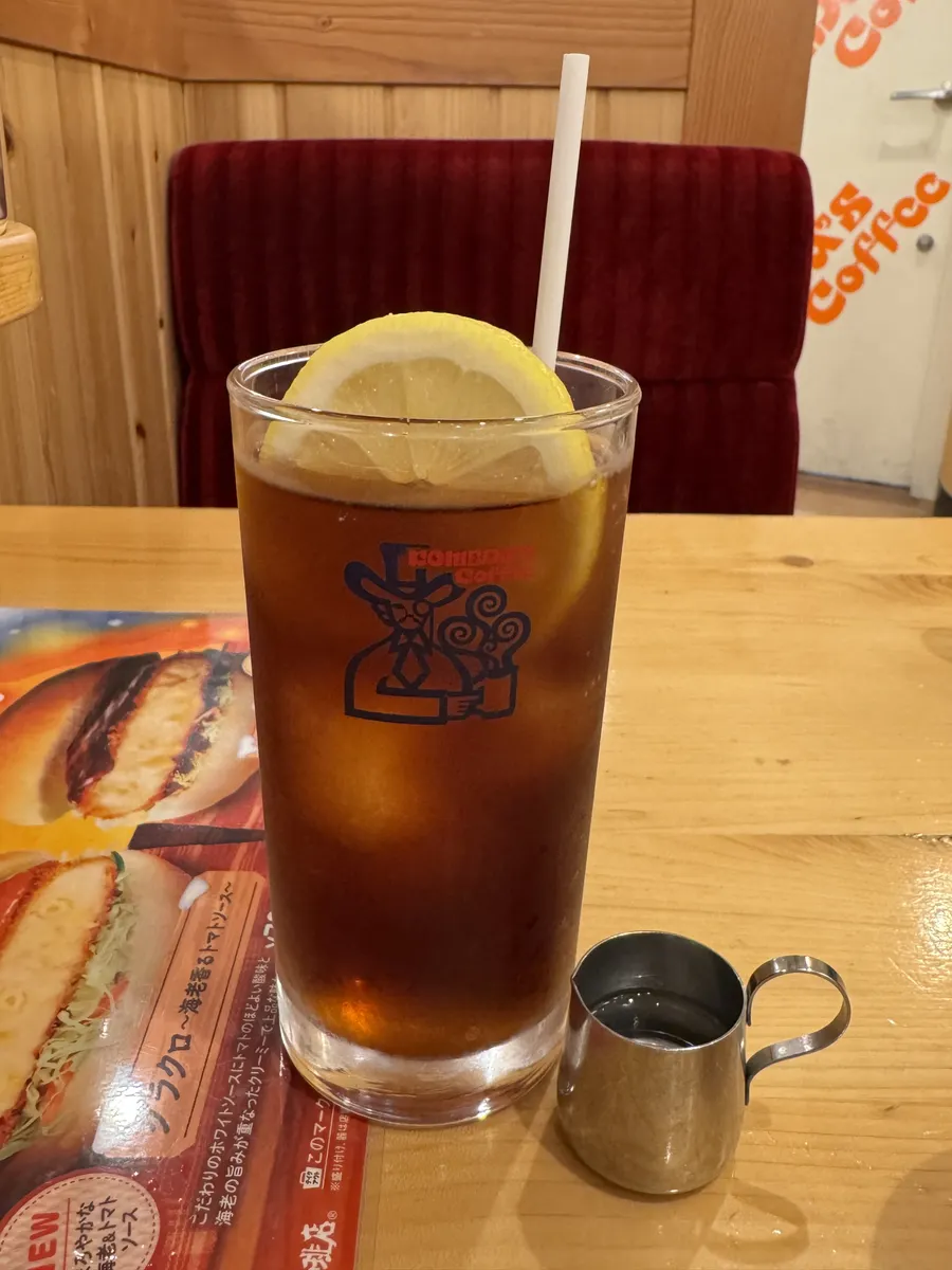 アイスレモンティー、輪切りのレモンが大きくてインパクトあり🙆♀️爽やかで美味しそうですね🎶