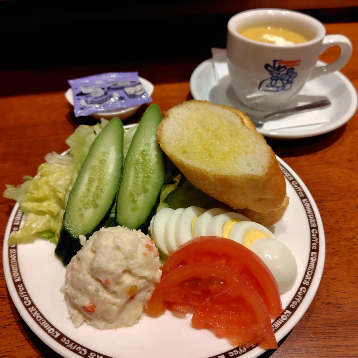 コーンスープにサラダバゲット、美味しそうです。明日も良い一日をお過ごしください。