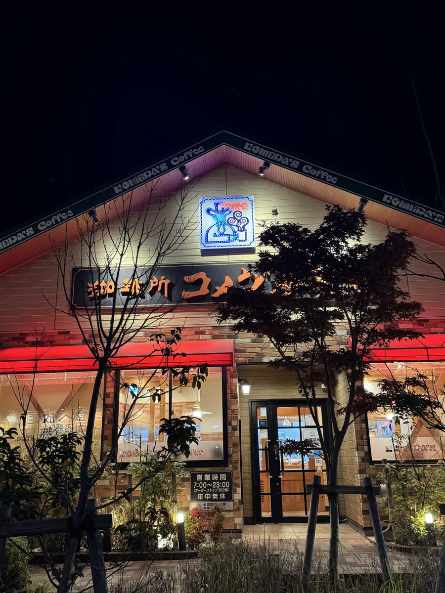 夜のコメダは静かで落ち着いていて良いですね😌外観も素敵ですね✨️