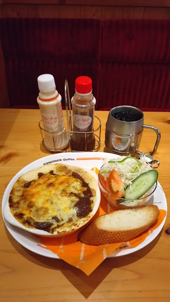 熱々チーズカリーグラタン美味しそうですね😍サラダをつけるのも👍️✨️残念ながら、よく行く店舗には無くて…食べでみたいです😋