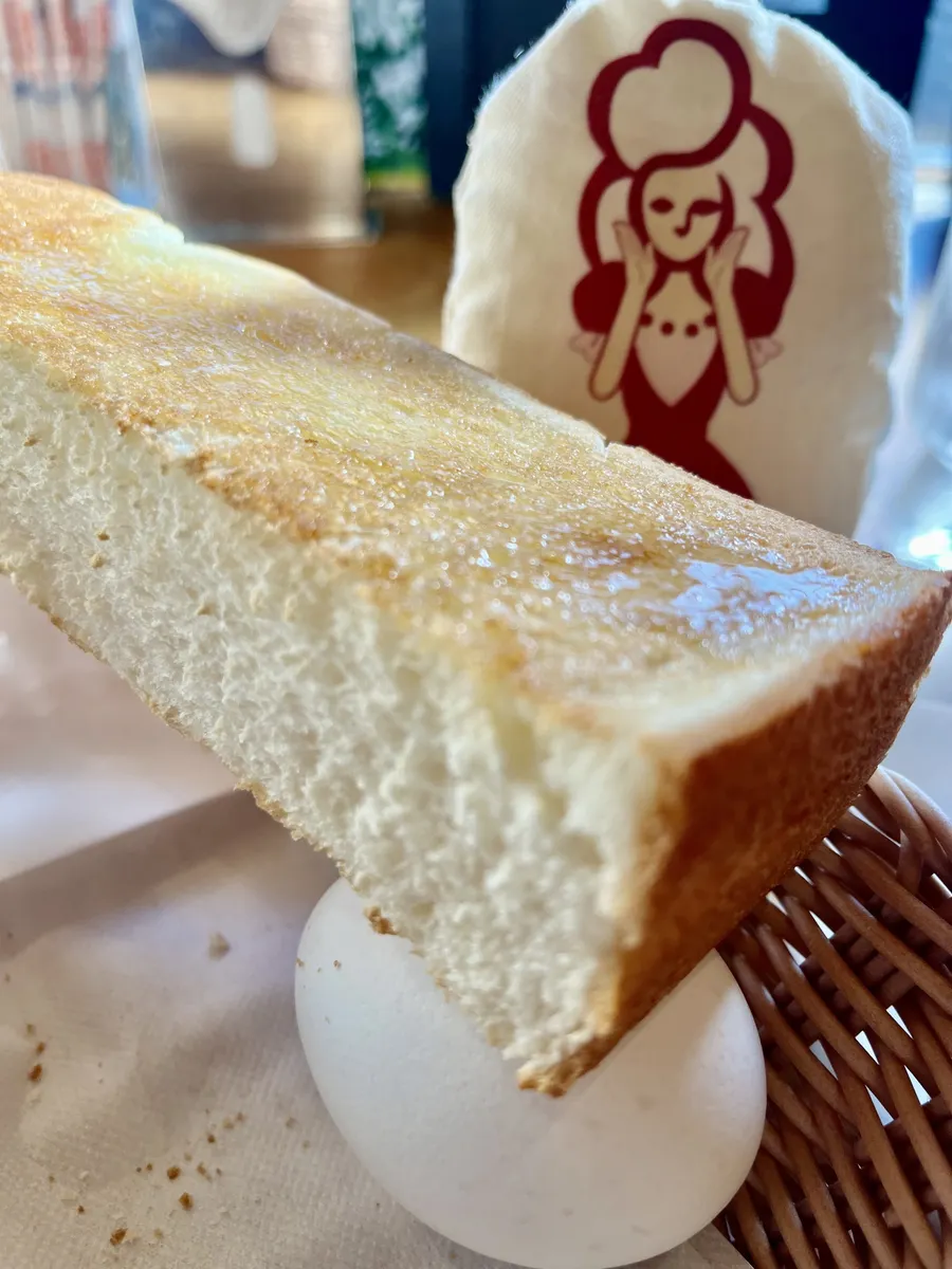 いつもよりトーストが平行感強めで何故だろうと思ったら今日は豆皿ではなく茹でたまご!