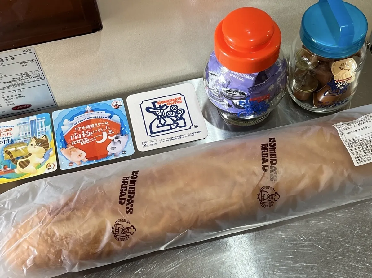 近隣では稲葉地でしか買えないフランスパンです。スーパーでもパスコのはあるのですが、値段の差は忘れましたが、パスコには申し訳ないですが、好きなのはコメダのほうです。