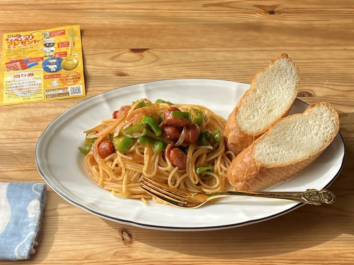 好みの加減にトーストして、ナポリタンに添えました。