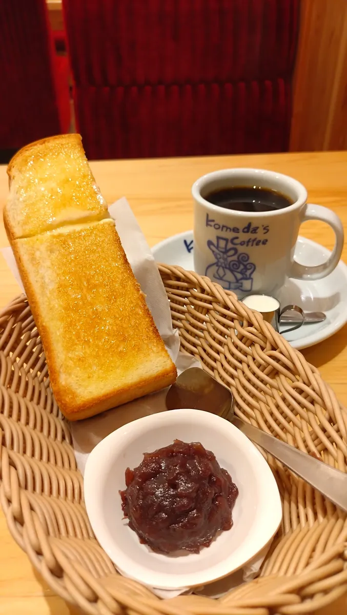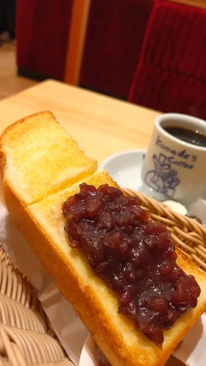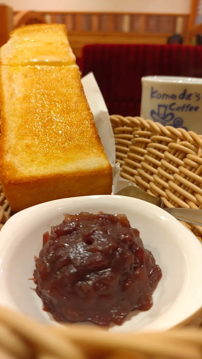 こんがり食パン🍞の上に甘いあんこ🫘、たまらないですね。👍