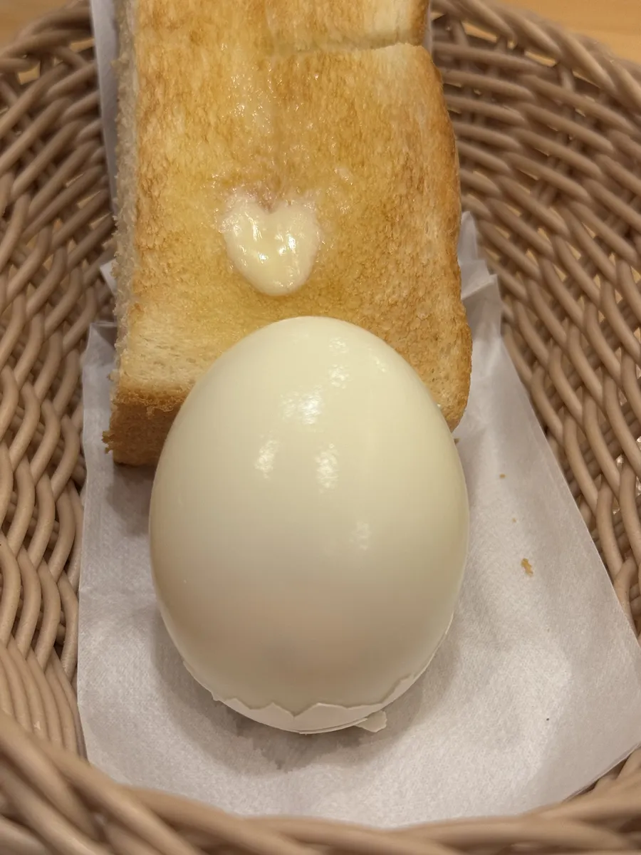 ゆでたまご🥚さん、溶けたバターが💛ハートに見えるようで興味津々🙄✨。