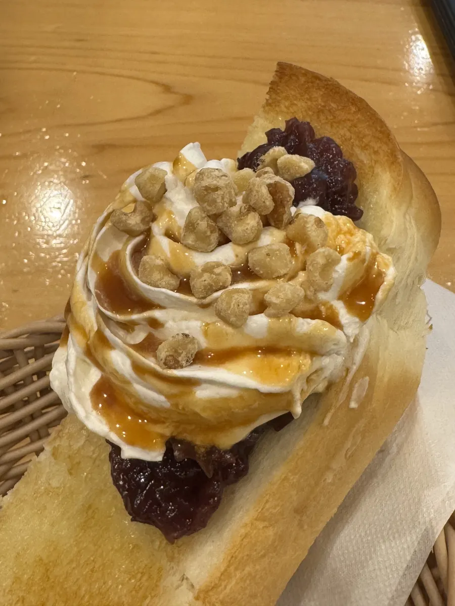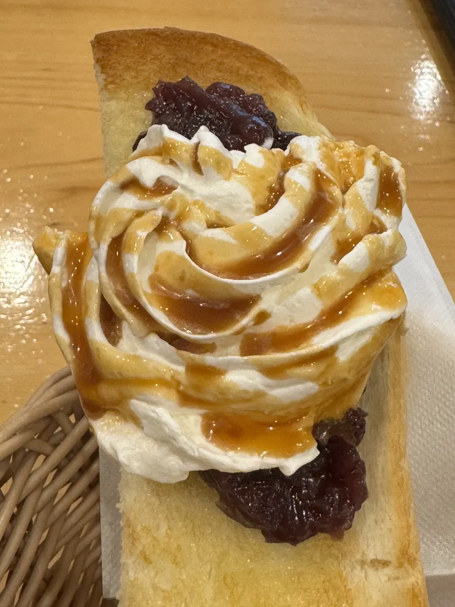 キャラメルオーレクルミッ子のたっぷりホイップと小倉あんのせトースト、美味しそうですね😋