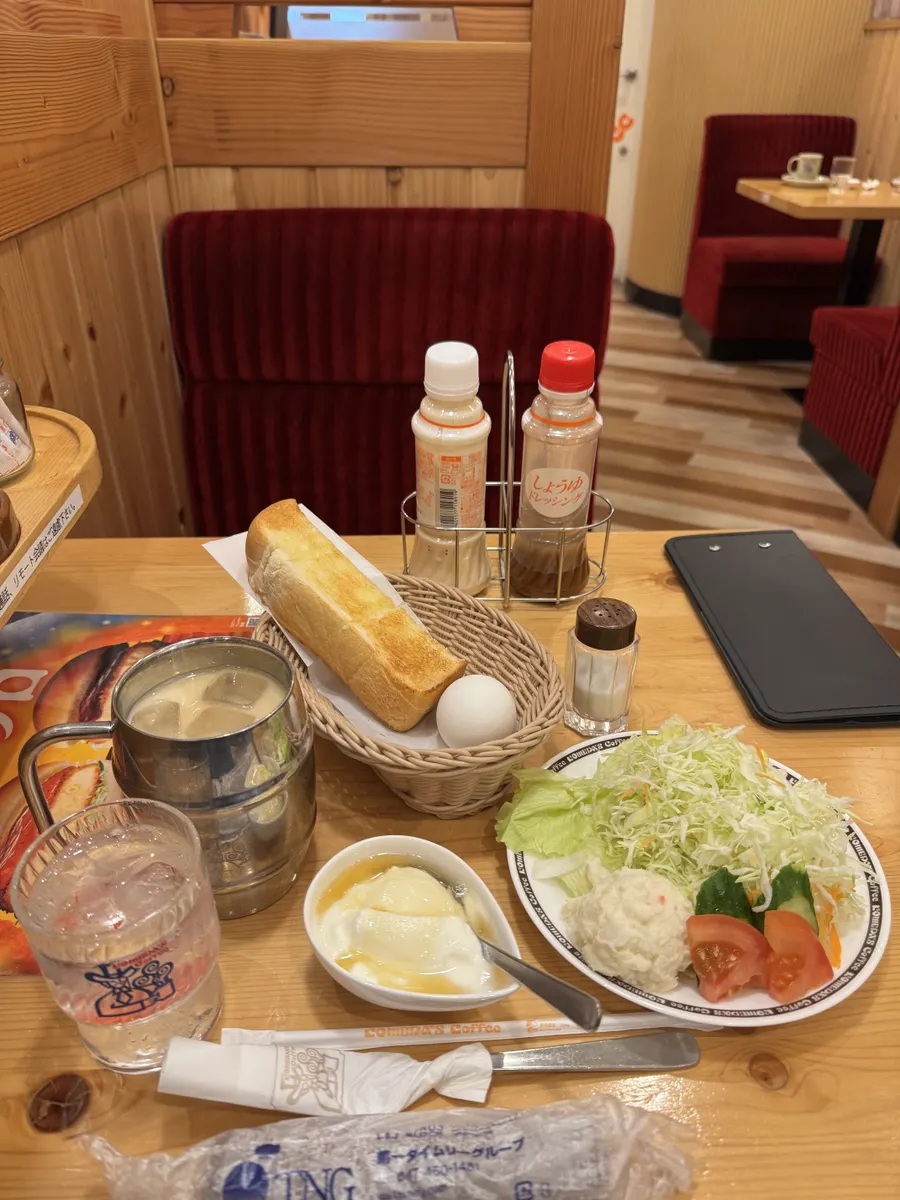 いつものモーニング🧊☕️🥚🍞🥗🍯美味しそうだぎゃー🤤✨