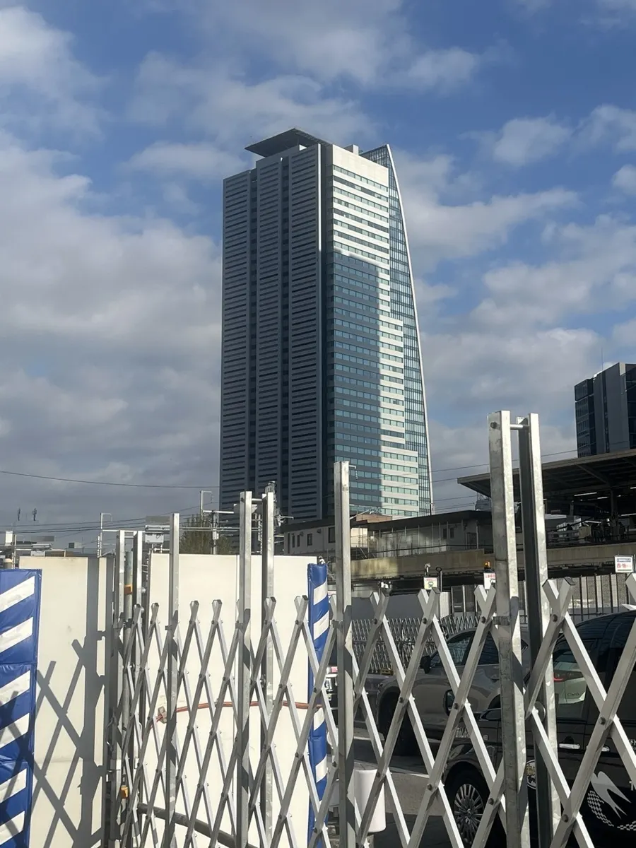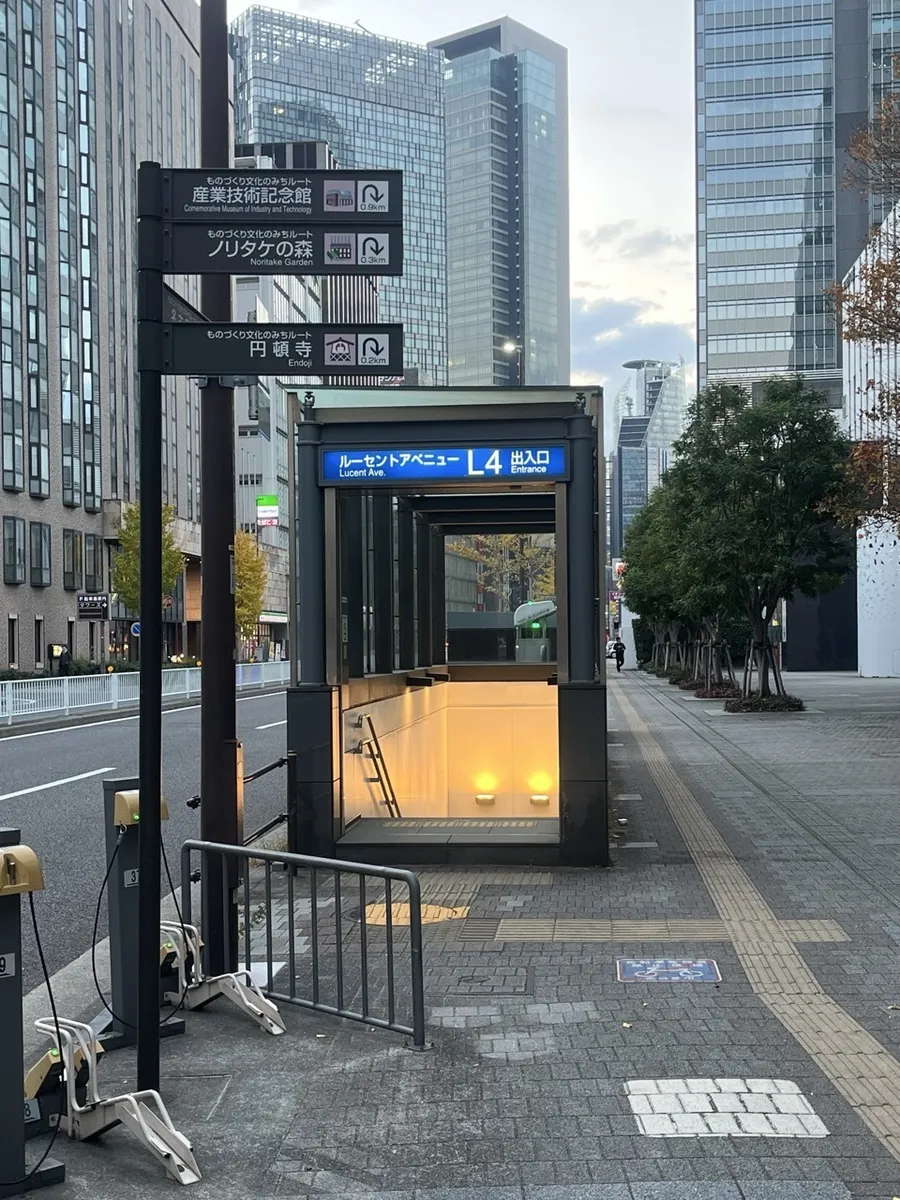 地下街に次ぐ地下街を抜けて駅の反対側へ出ると、ようやく高く昇り出した太陽が、少し前までいたビルの美しいカーブを輝かしく染めていました。