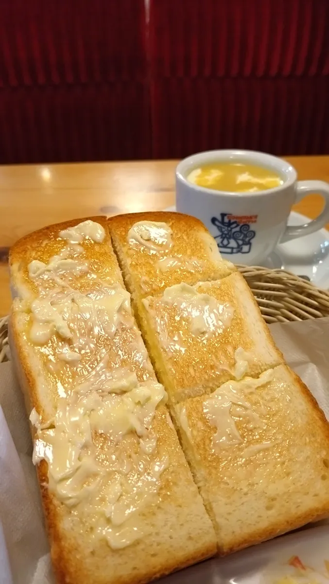 🌽コーンスープ&厚切りトースト美味しそうだぎゃー🤤✨