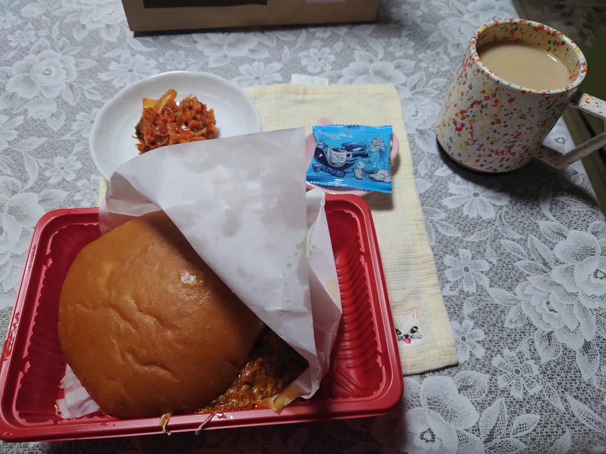 台湾ミンチコメドム🍔+カラシマヨ+キムチ