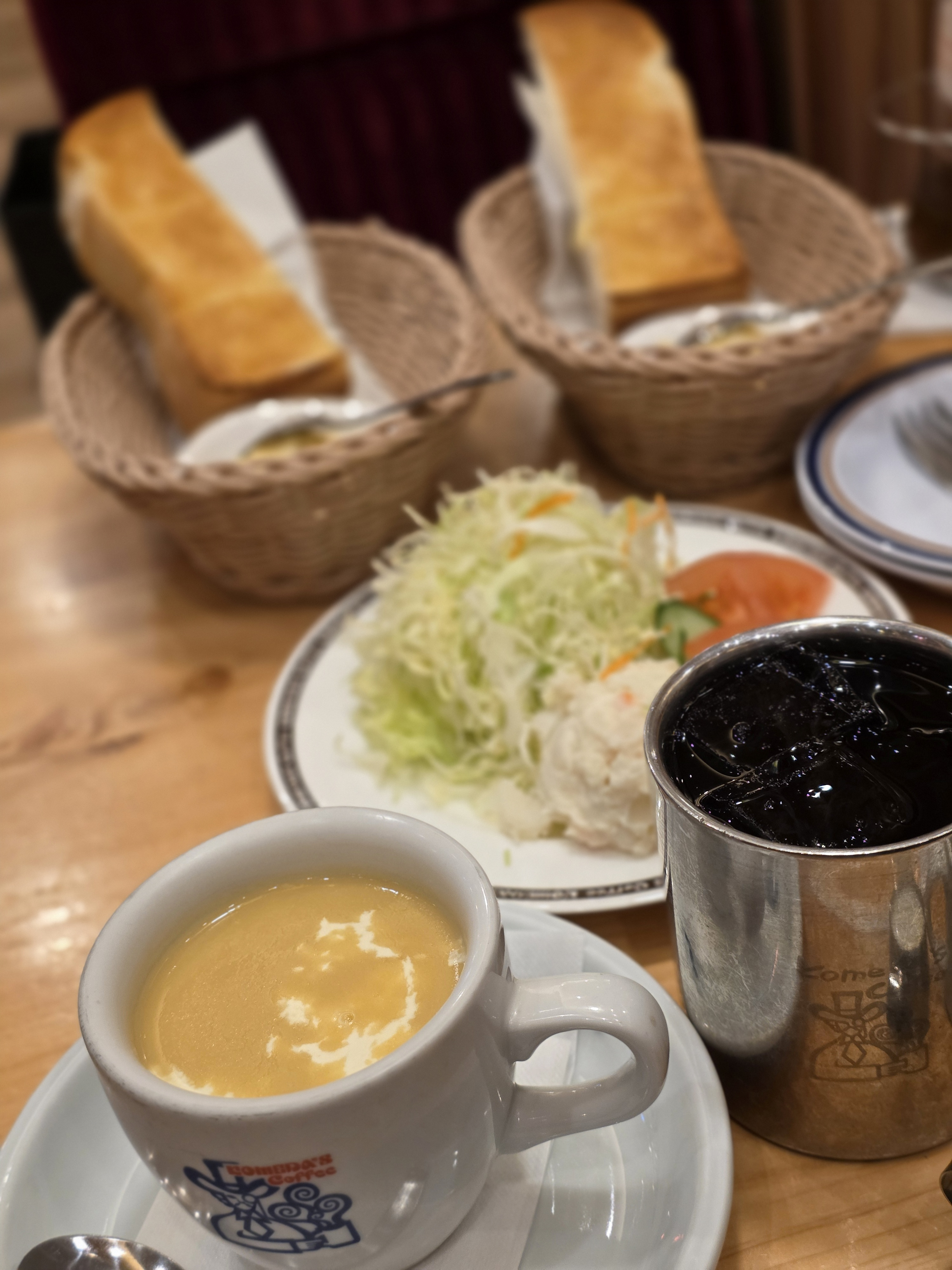 🌽コーンスープ&🧊アイスコーヒーでモーニング🫘🍞🫘🍞🥗美味しそうだぎゃー🤤✨
