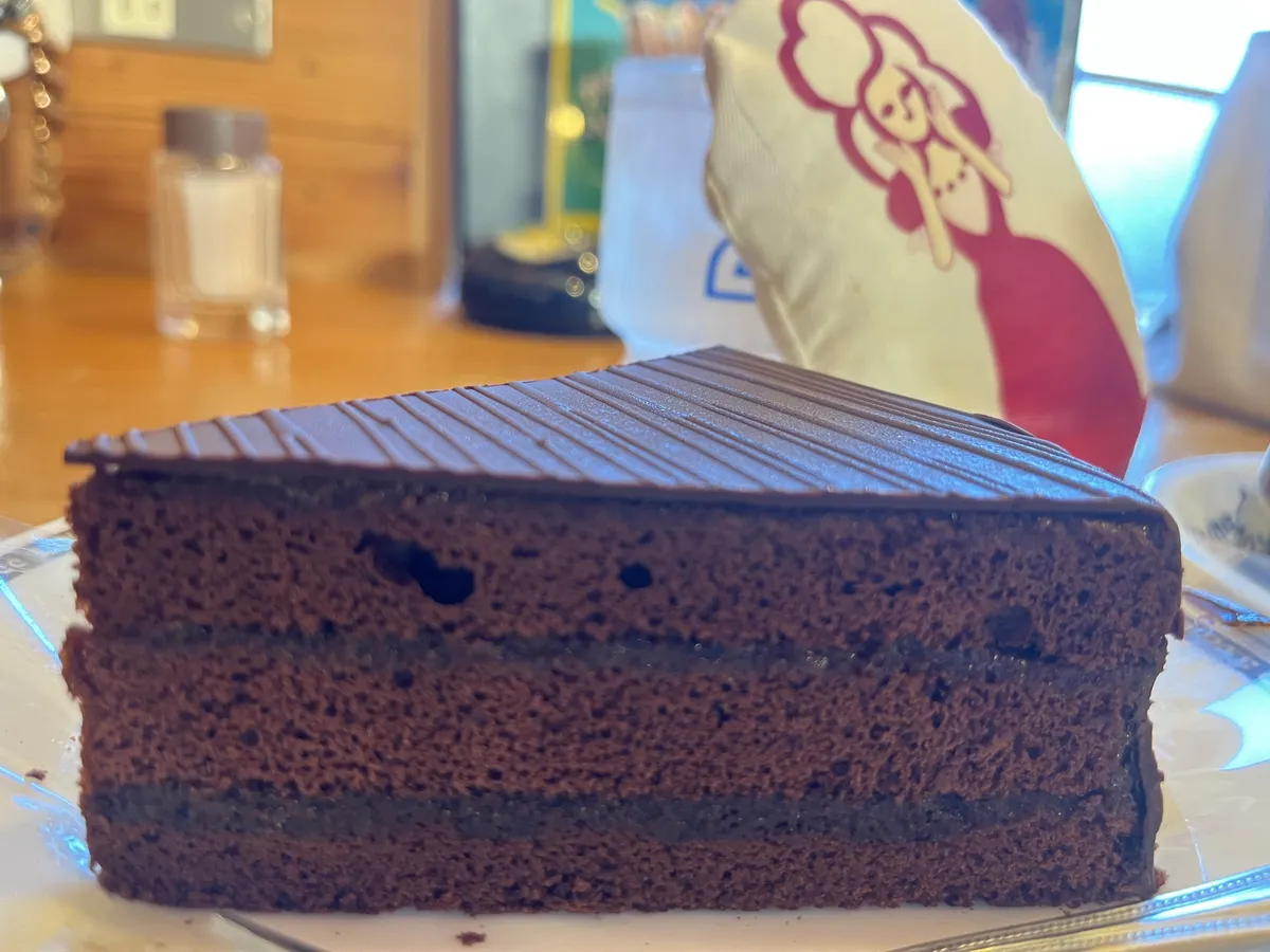 アプリコットショコラの表面は、それほど硬くはありませんがややパリパリ食感で、フォークで刺すと割れる感じです😅チョコ好きにはたまらないケーキだと思います😍