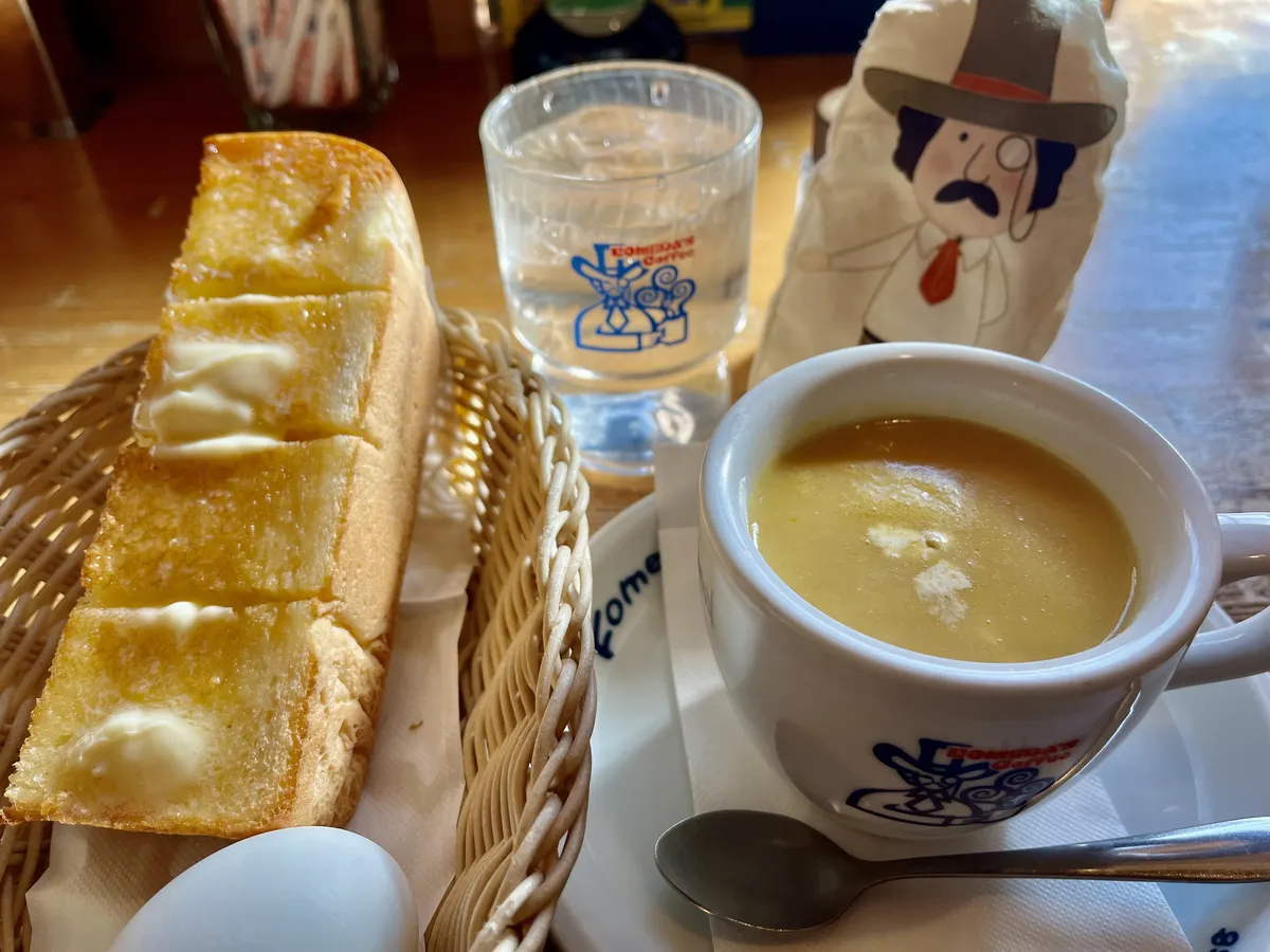 バターたっぷりトースト、コーンスープ、美味しそうです。