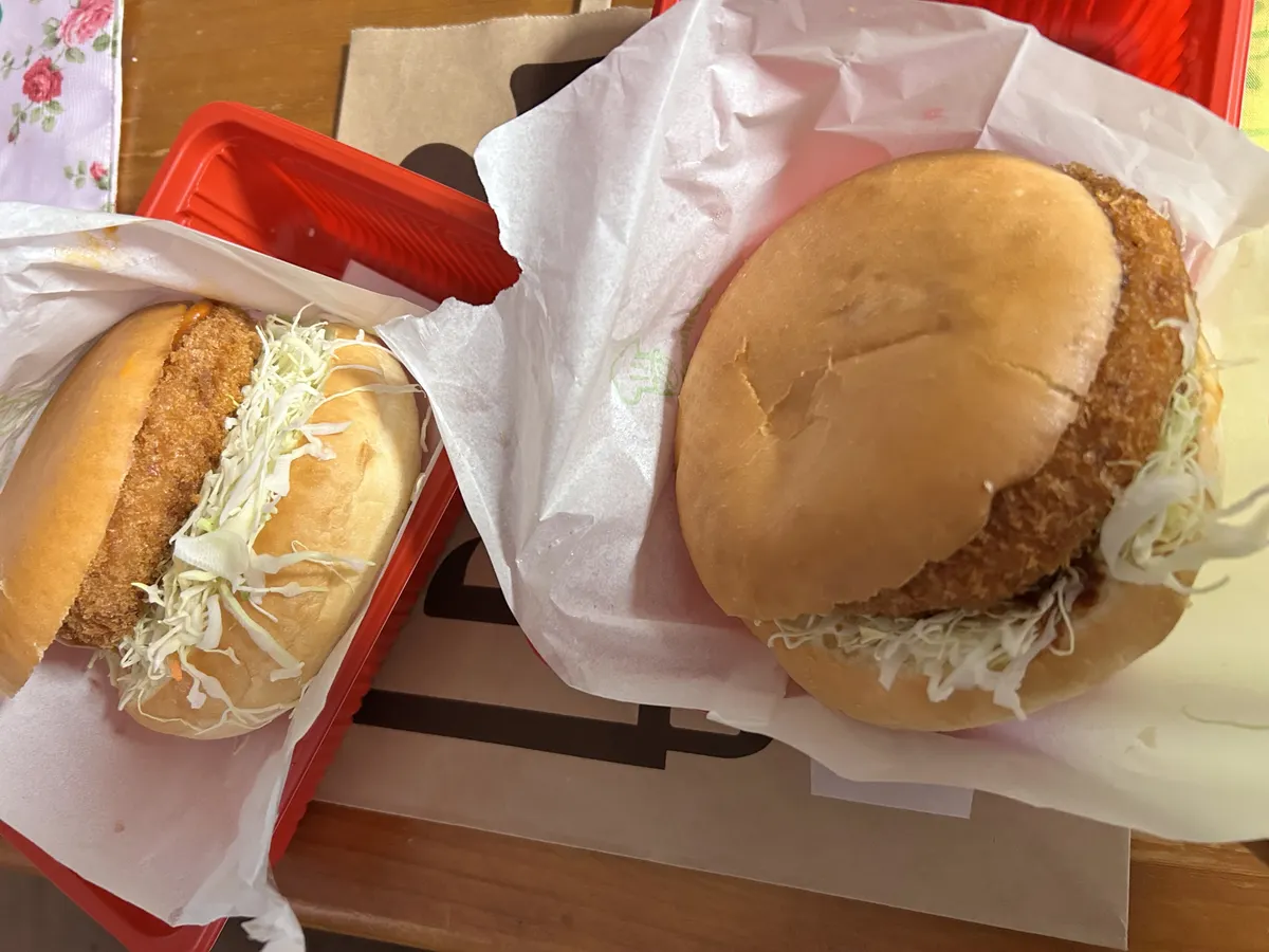 見た目ソースが垂れないように袋の奥に入れて有り綺麗な🍔🤩左をひっくり返したら
