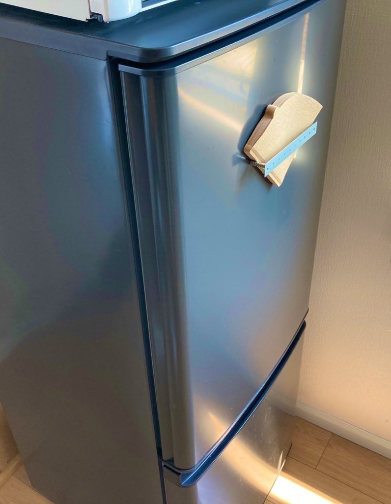 あとは冷蔵庫など磁石がくっつくところにネオジム磁石を重ねて、プレートを乗せるだけで完成。