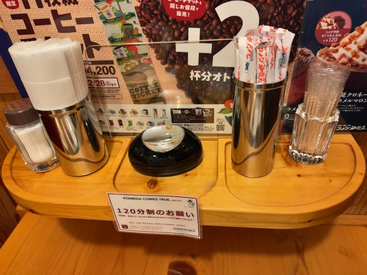 しかしそれ以上に、紙ナプキンとスティックシュガーが入ってるステンレスの細い筒が珍しくて個性的だなと感じました。