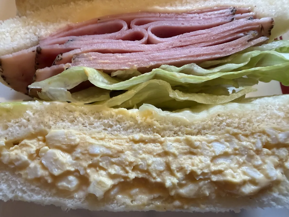 ペッパーポークとたまごの具沢山サンド、美味しそうな断面&ボリューミー👏✨