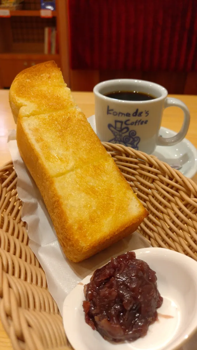 熱々コメダブレンドと3番モーニング💗、トースト🍞のバター🧈染み染み加減がとっても美味しそうですね❣️