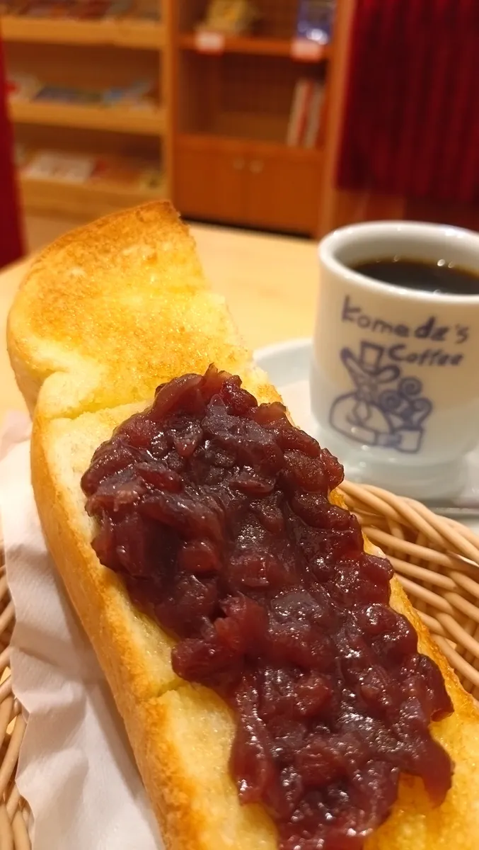 あんこのトーストも綺麗に焼けて、バターも良くしみて美味しそう🫘🍞