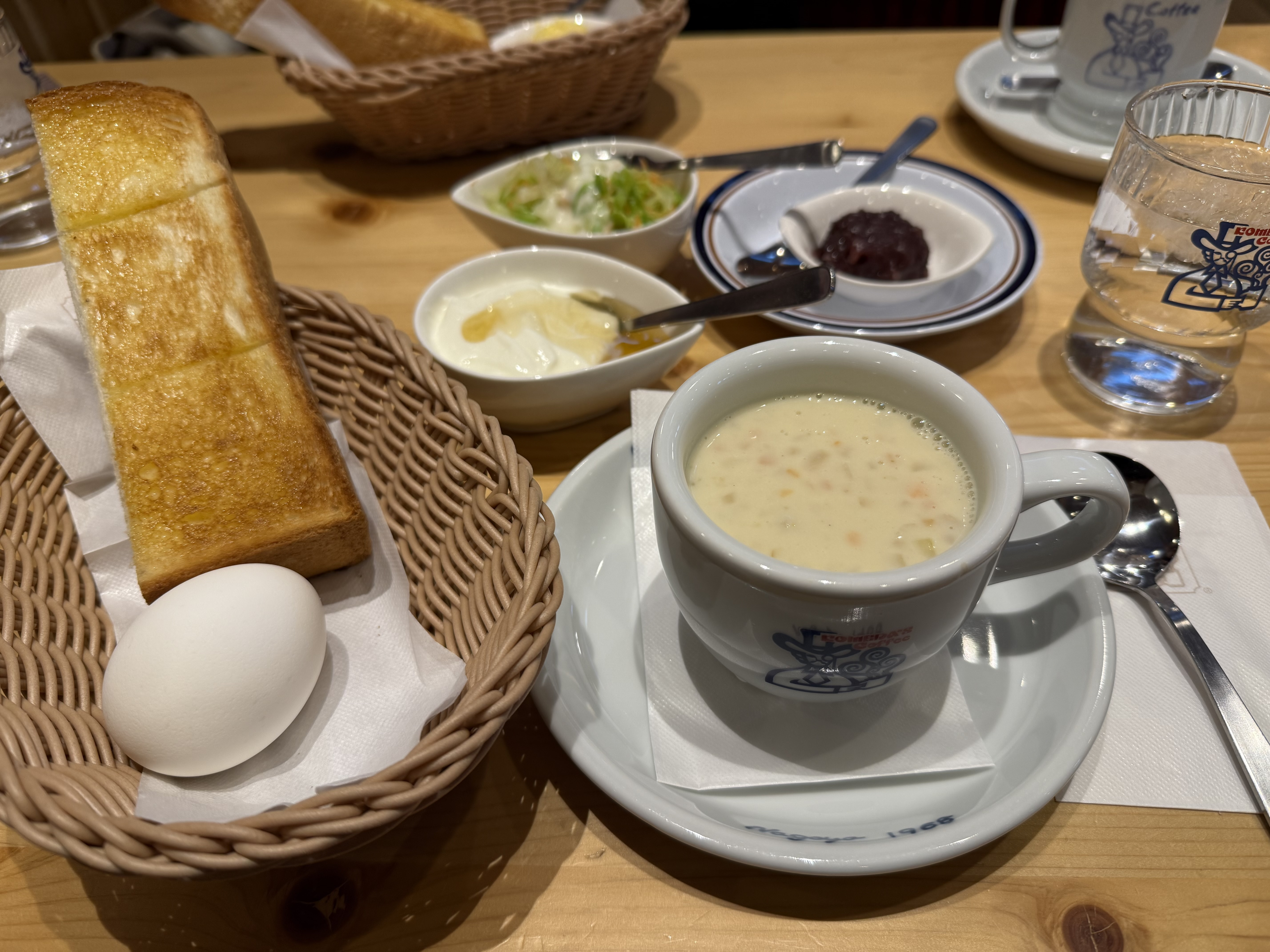 ⚪️クラムチャウダーでモーニング🥚🍞🫘🥬🍯美味しそうだぎゃー🤤✨