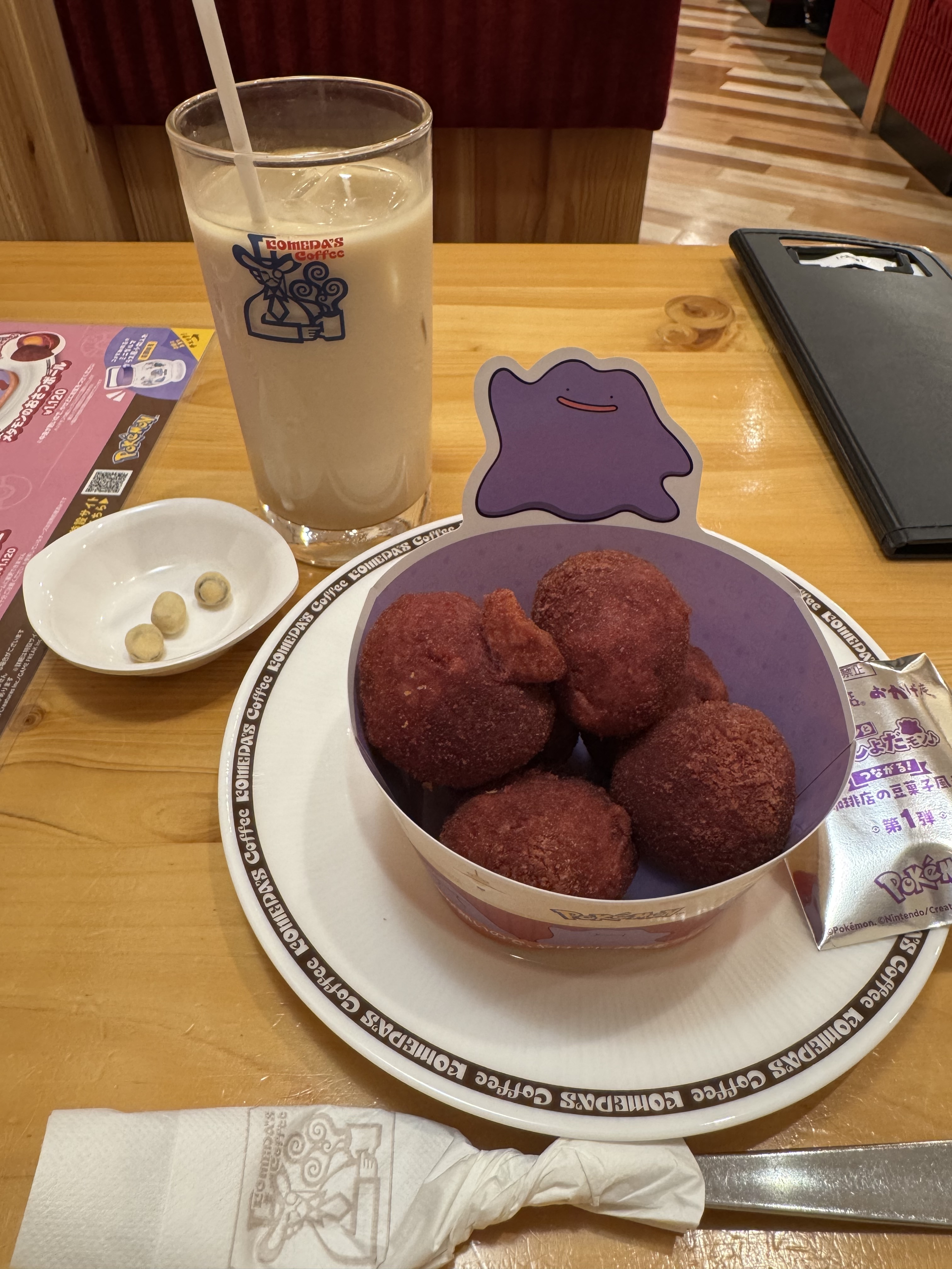 おさつボールにアイスミルクコーヒー、美味しそうですね😄