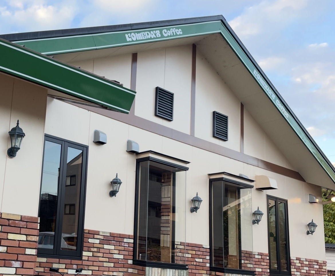 朝は寒かったですが、日中はポカポカでしたね。窓の庇が珍しいコメダですね。