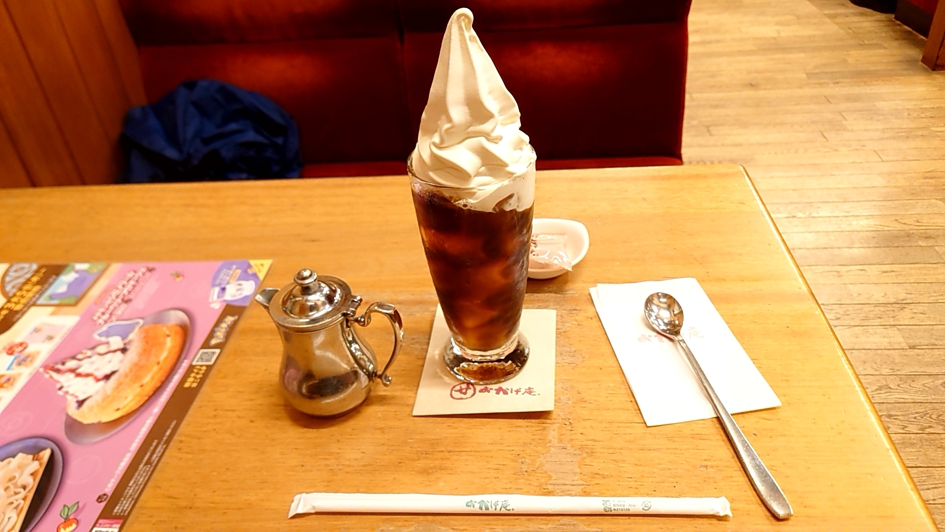 珈琲フロート。個人の感想ですがコメダのソフトクリーム🍦より甘さ控えめで濃い味がしました