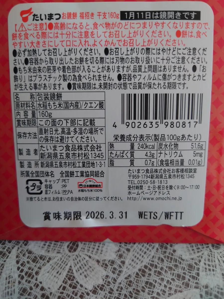 ひっくり返して見ると、しっかり鏡開きが昨日と書いて有りました。