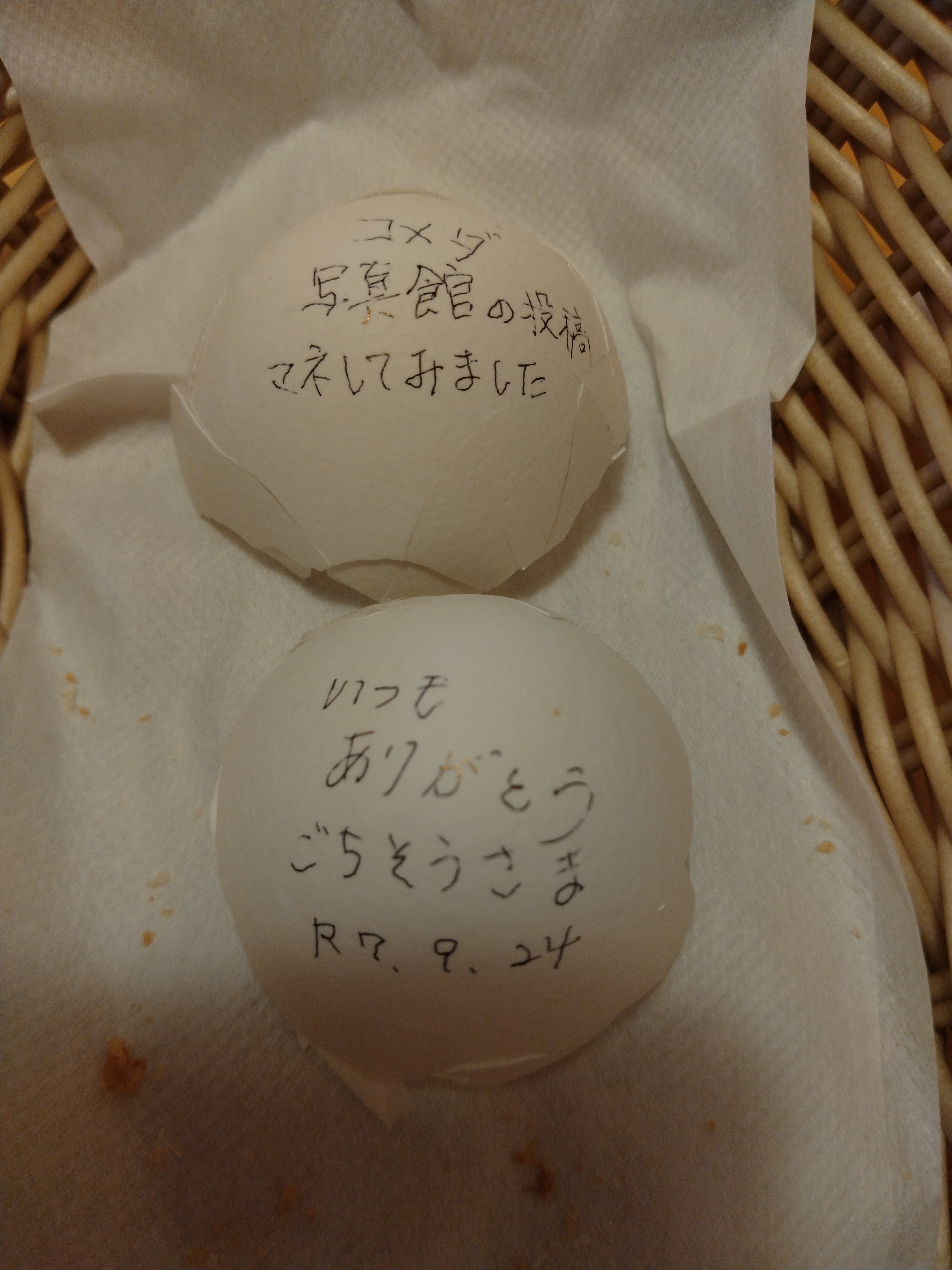 トップ > コメダ写真館 > エコ⁉️😅 みあま 2025/09/24 09:52 エコ⁉️😅 いつもメッセージカードに書いてくるんだけど 今日🥚書いてみましたがマジック忘れた(笑) いいね 共有する 共有する X facebook LINE リンクをコピー コメントする 2 件の返信 (新着順) ミュートしたユーザーの投稿です。 投稿を表示 NAE☆ 2025/09/25 16:29 いーね💕︎ホッコリ(◍︎´꒳`◍︎) いいね 返信する ミュートしたユーザーの投稿です。 投稿を表示 のりべ 2025/09/24 18:03 みあま みあまさん、こんばんは😊 素敵ですね😉✨ でも、殻に書くのは難しそうですねぇ😜 いいね 返信する ミュートしたユーザーの投稿です。 投稿を表示 みあま 2025/09/24 20:43 のりべ ボールペン難しいですよ😲🤠 いいね 返信する ミュートしたユーザーの投稿です。 投稿を表示 のりべ 2025/09/26 14:16 みあま やっぱり(笑)😝😝😝 いいね 返信する