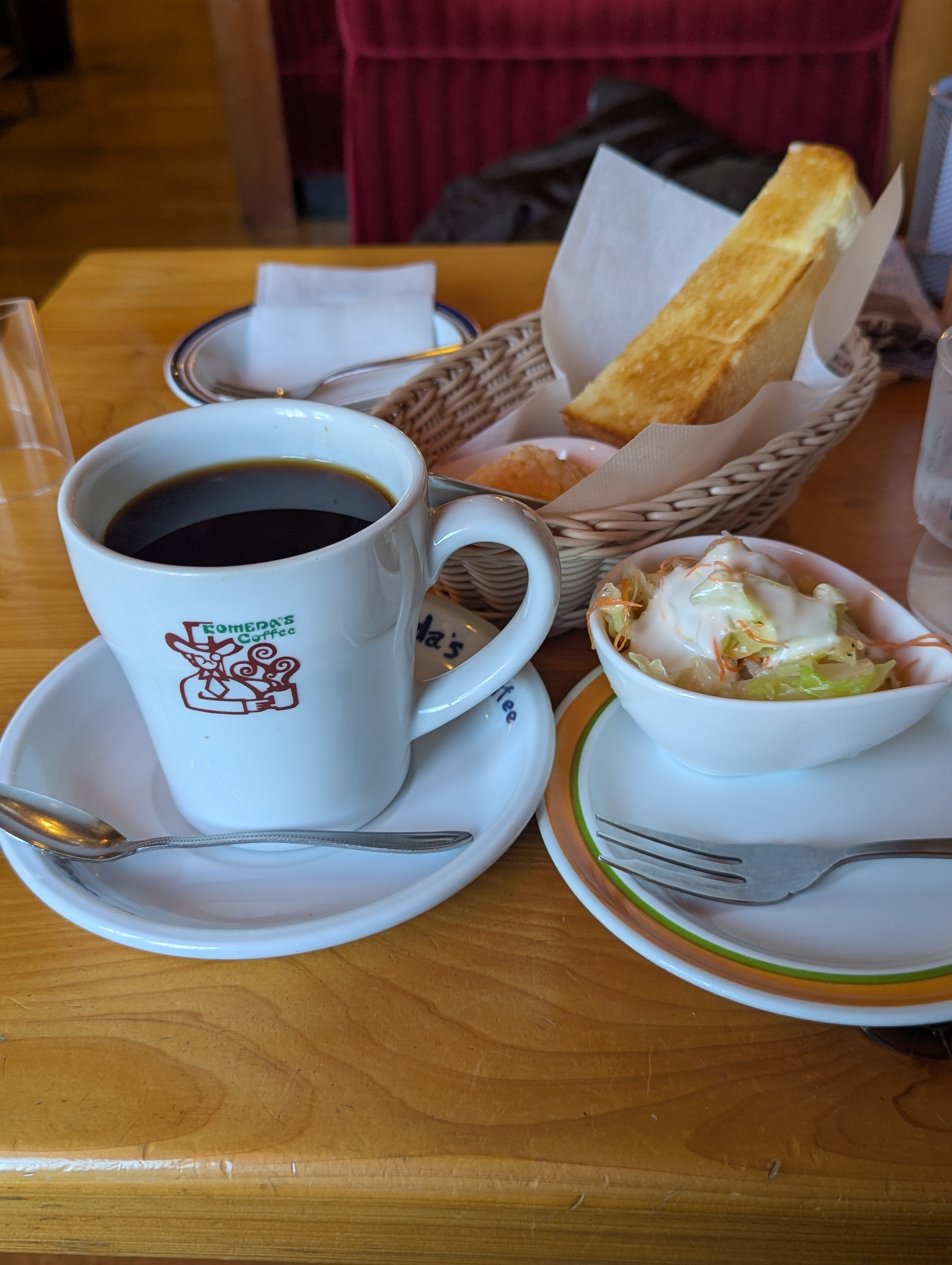今日は1年の締めとして毎コメにスタッフさんの挨拶したくモーニングに来ました。いつも食べないようなコールスローとか食べたりアメリカンも飲んだ事なかったので飲んで見ました。クリープ入れ過ぎるとコーヒーの味が消えてしまうので気をつけながら投入です。来年も色々チャレンジして行きたいと思います。後半日弱で2025年も終わりますが今日行かなかった人もこれから来る人もいらっしゃると思いますが来年もよろしくお願いします😊 2025年12月31日🎍🎍