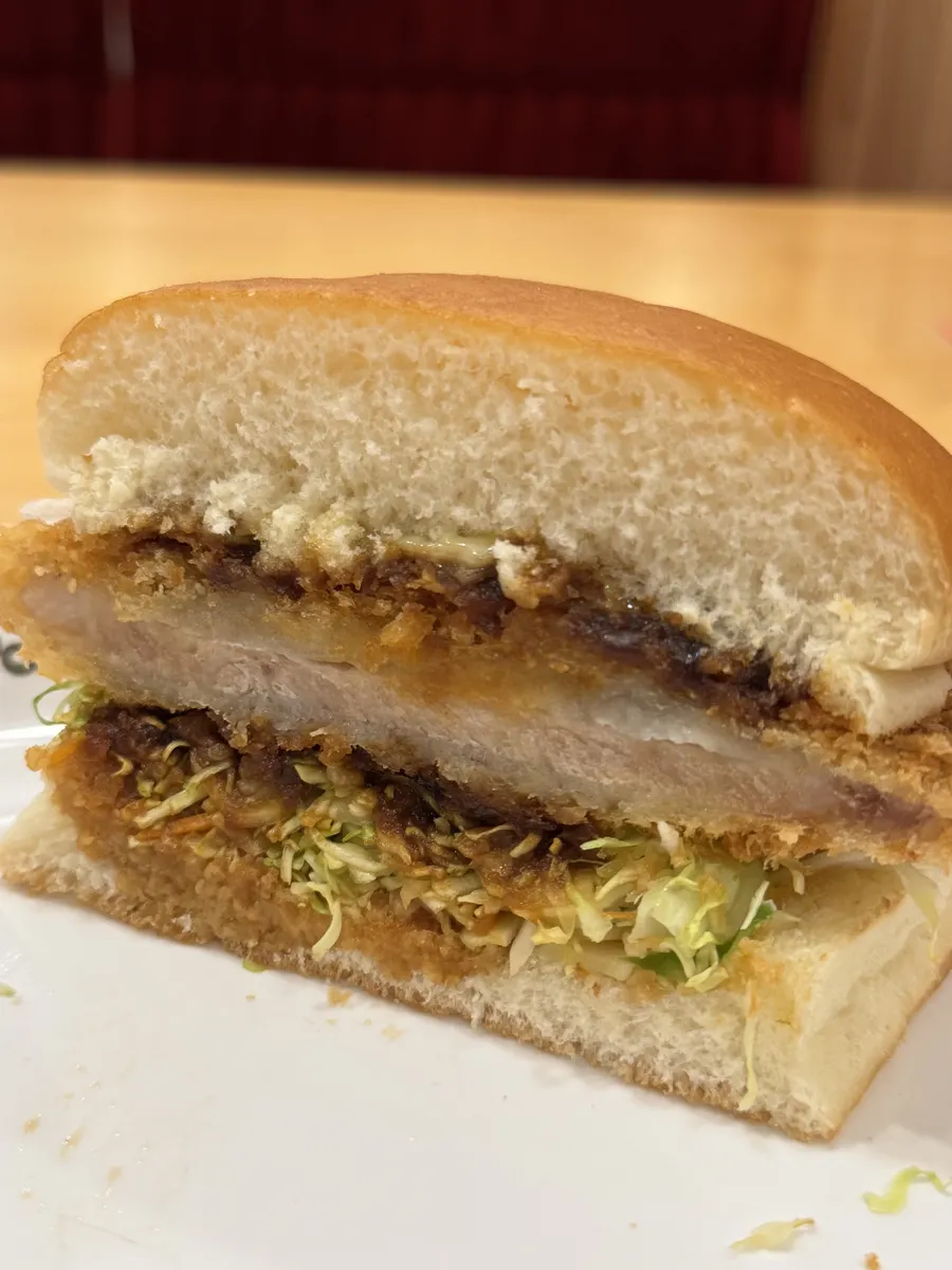 バンズからはみ出す巨大な味噌カツ、断面もとても上手に撮れていて、とても美味しかったですよね💘