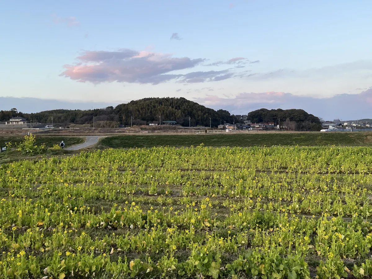 半年前、ごんの秋祭りで訪れた場所に、はたして菜の花畑が広がっていました。
