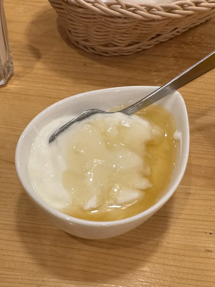 デザートの蜂蜜入りヨーグルト🍯も蜂蜜たっぷりで、ツヤツヤでお肌までツヤツヤになりそう🥰
