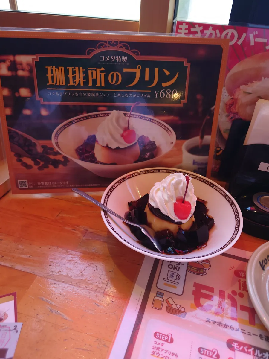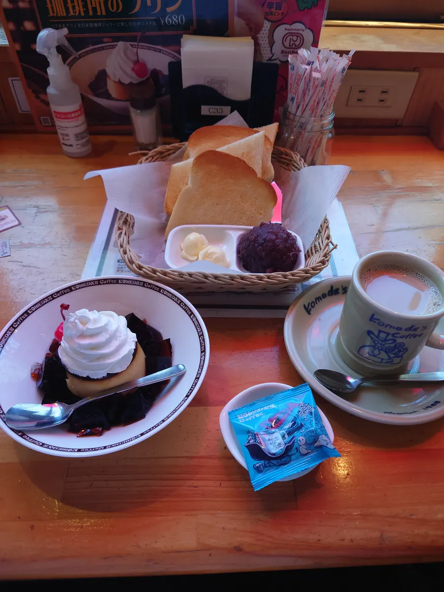 トップ > コメダ写真館 > 初めまして。 みいこ 2026/02/09 16:18 初めまして。 今日は、念願の小倉トーストを、頂きました。 美味しゅうございました。 デザートはプリン🍮 豆菓子がかなり入っていたので、これもびっくり!! 全部で10粒。1個あたり、1円? 先程プリンを食べた時のさくらんぼの軸と種で、さくらんぼ復活♪ ナフキンが赤だったら、さくらんぼになるかも… ならないけど。 いいね 共有する 共有する X facebook LINE リンクをコピー コメントする 2 件の返信 (新着順) ミュートしたユーザーの投稿です。 投稿を表示 ソイラテ子 2026/02/10 12:46 みいこさんこんにちは☀️ 私もまだ財布にチケット入れたままでした!! 使わないと😃 プリン美味しそうです 今日食べたったのですが 諸事情によりお預けにしました いいね 返信する ミュートしたユーザーの投稿です。 投稿を表示 みいこ 2026/02/10 13:00 ソイラテ子 ソイラテ子さん、こんにちは。チケット使わないと、うっかりと言う事が有ると損した気がして、悔しい思いが残りそうです。 私は、期限が有るチケットが残り3枚となりました。 あまり食べないミニシロノワールが2枚と、この前初めましての小倉トースト1枚。 期限が5月なので、余裕のよっちゃんなんですが、この先、どんなアクシデントに見舞われるかが不明な為、じゃんじゃかじゃんじゃん使います。 今日はいつものコメダでは無く、出先の先から寄りコメなので、福袋のチケットは使えないので、残念です。 東京都民限定のチケットなんかが有ったら、嬉しいです。 無理かな。 因みにここのショコラノワールは終了のお知らせが貼って有りました。 いいね 返信する ミュートしたユーザーの投稿です。 投稿を表示 NAE☆ 2026/02/09 16:21 みいこさん♪ コメダにいまいるですか?🫣🤭 いいね 返信する ミュートしたユーザーの投稿です。 投稿を表示 みいこ 2026/02/09 16:35 NAE☆ NAE☆さん、こんにちは。 実は、帰って来て投稿しようと文章を打っている時にうっかり寝てしまい、電話が鳴り、投稿の事を忘れ、水撒きをして終わり、スマホを開いたら途中の文章が… そんな訳で、今自宅なんですよ。 もう少ししたら、歯医者に行く予定です。 今日は、午前中に整形外科のリハビリを受けお昼は、コメダへ。そして、5時に歯医者に行く予定です。 どうもリハビリで運動したら、疲れてしまい、寝てしまいました。 そんな訳です。トホホ。 では徒歩でトボトボこれから出かけます。5分も有れば到着する場所にお医者さんがいます。 いいね 返信する