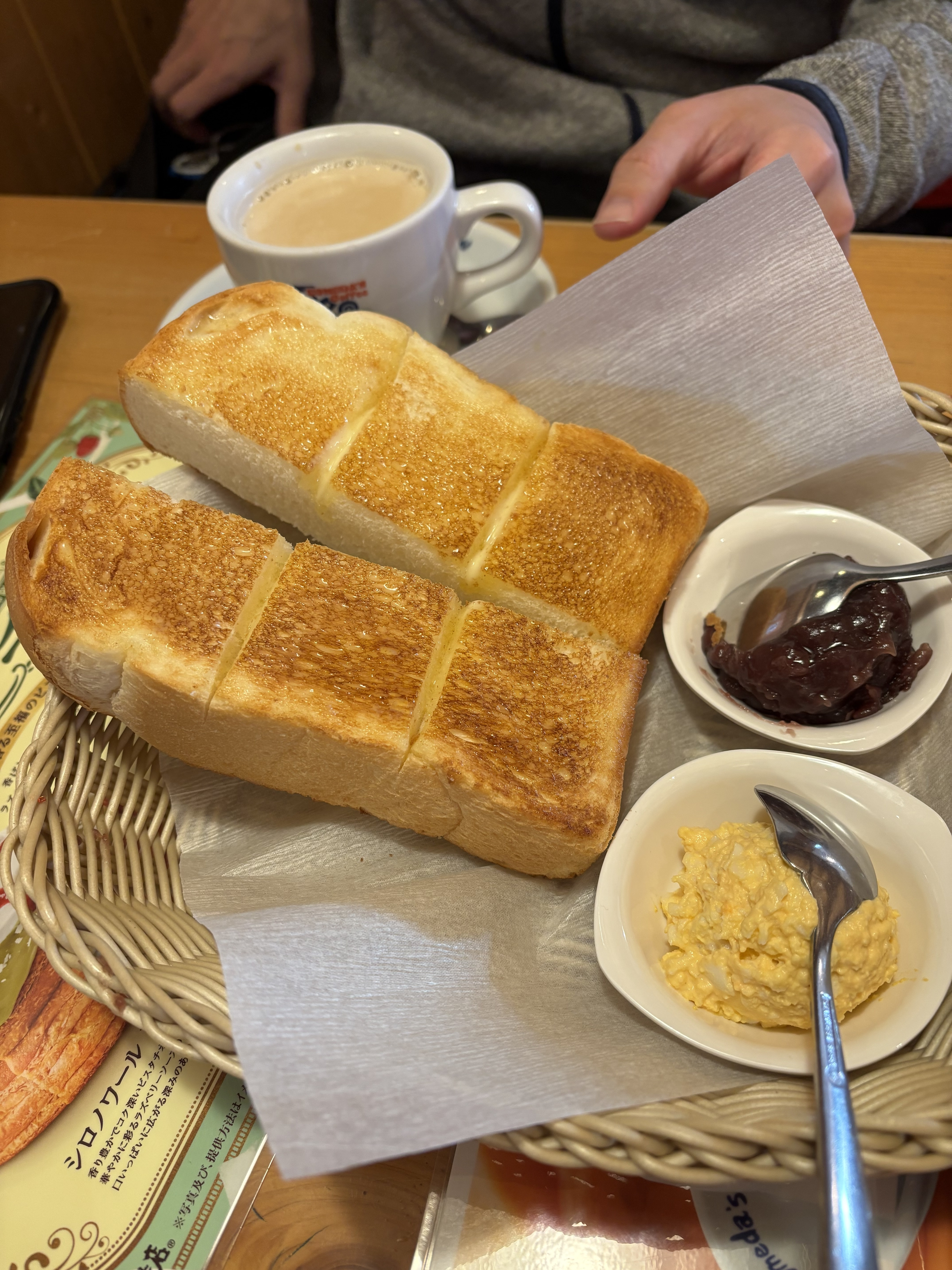 はい、みんな大好き、みんな待ってる、おいしいコメダモーニングですね🎶☕😋🍞🎶🥚😋🫘🎶