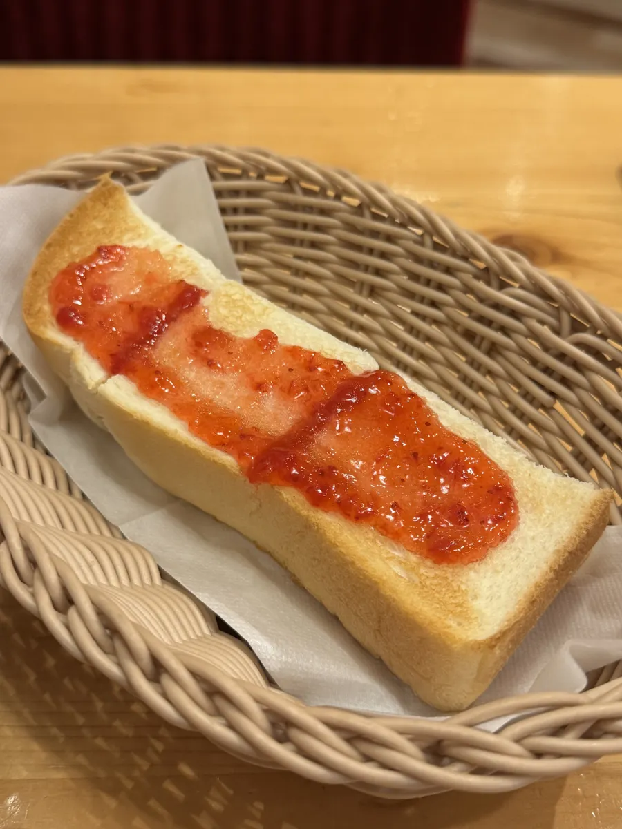 素焼きにコメダのいちご🍓ジャム、今まで自宅でもバターを塗った上にいちごジャムを乗せるのが定番だったから、最初物足りないかなぁ…なんて思ったらとっても美味しかったです🎶