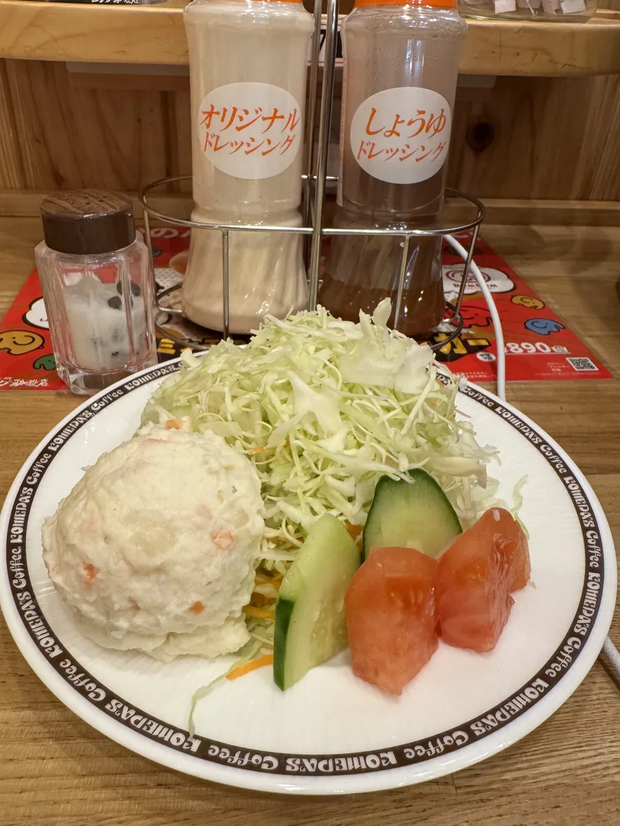 しっかりお野菜補給のミニサラダ🥗、ポテサラ大盛りで嬉しいです😊。