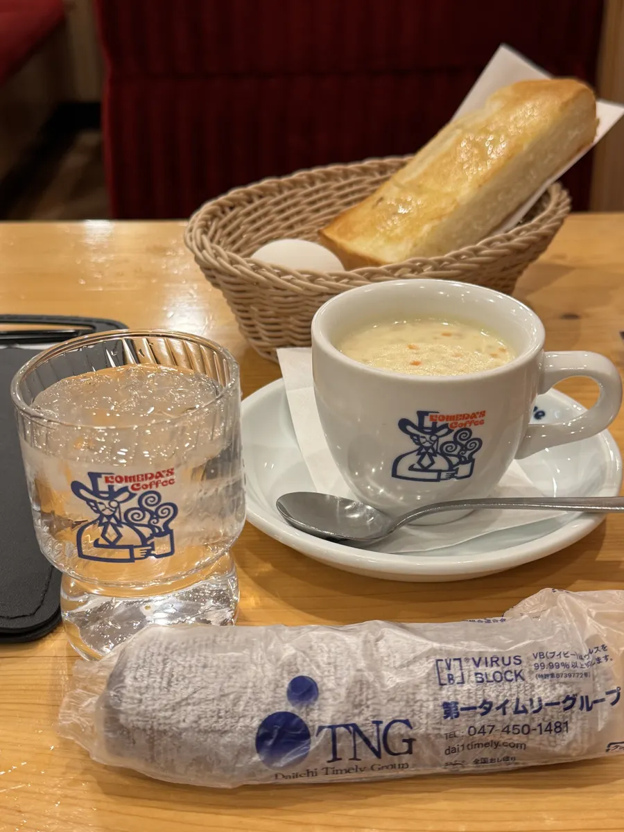 クラムチャウダーモーニングをいただきます。最初にクラムチャウダー到着🎶