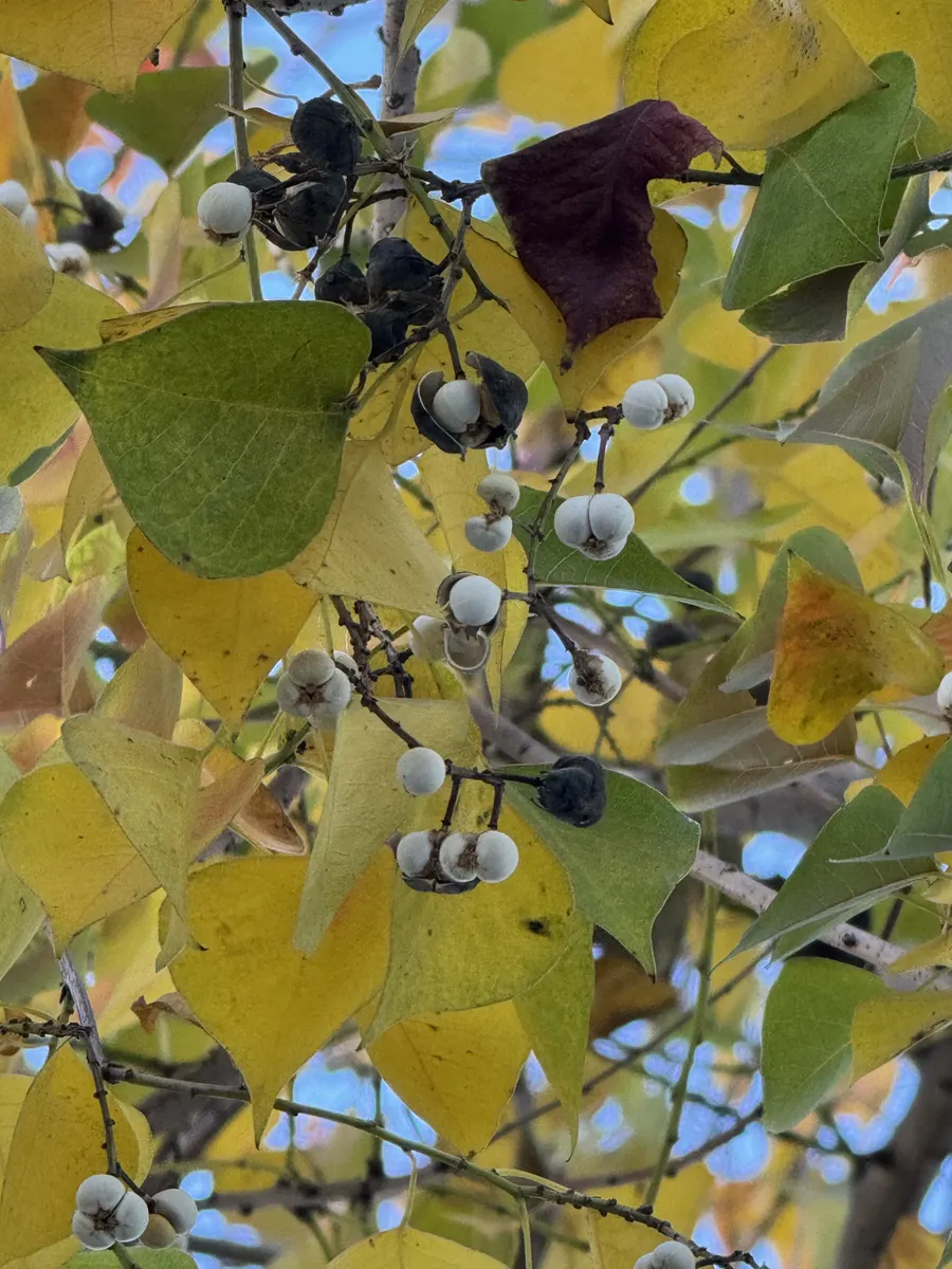 焦りながらも、ナンキンハゼの黒くなった実から白い種が姿を現しました🎶