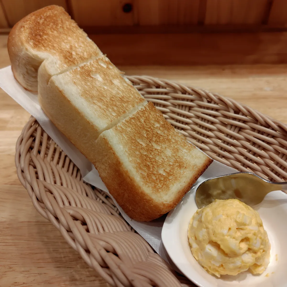 サクサクのトーストとまん丸綺麗に盛り付けられたたまごペースト、美味しそうなモーニングですね!