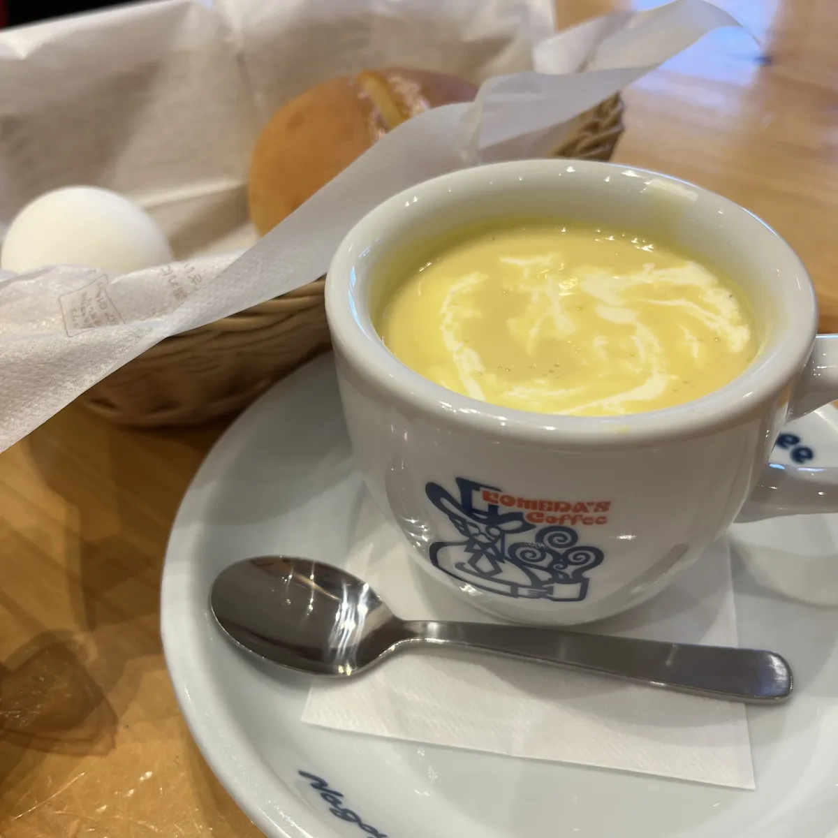 コーンスープ、昨日のお写真と比べるとたっぷり感ありますね ラッキー✌️😄