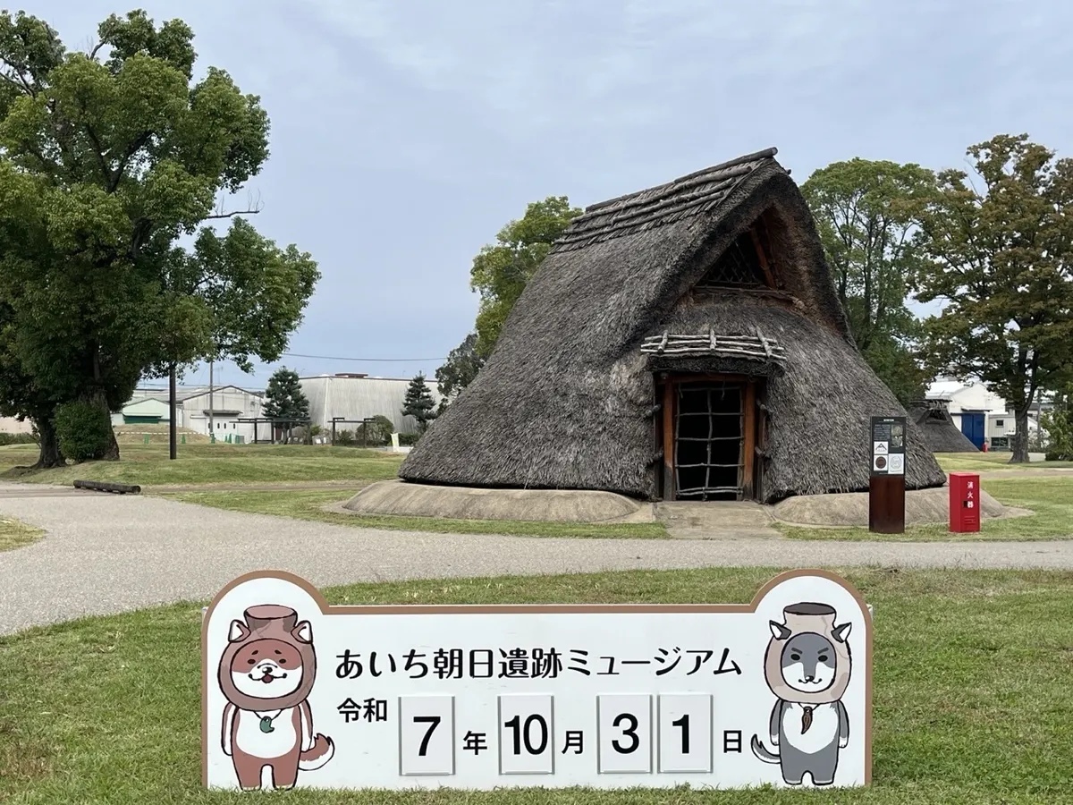 どちらも、言葉を話します。二人とも頭部が特徴的ですが、それはどういうわけか、朝日遺跡出土品の目玉である、尾張地方でだけ生産された円窓付土器にはまってしまったということです(そのほか、赤彩土器、銅鐸・銅鏡・巴形銅器、勾玉と管玉、骨角牙製装身具、鍬・鋤・杵・石包丁、石鏃・石剣、漁労具と紡織具、磨製石斧、鳥形木製品と土製品、木偶、卜骨などが常設展示され、屋外には、地域の園児が走り回れる芝生とともに竪穴住居と高床倉庫が復元展示されています。念のため、円窓付土器に耳が出せる穴は本来空いていません)。