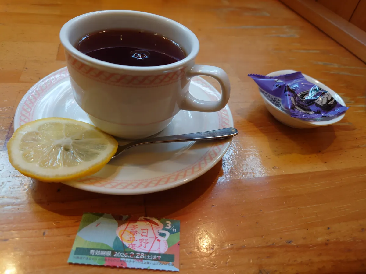 今日はチケットがレモンティーなので、お供はレモンティーです。