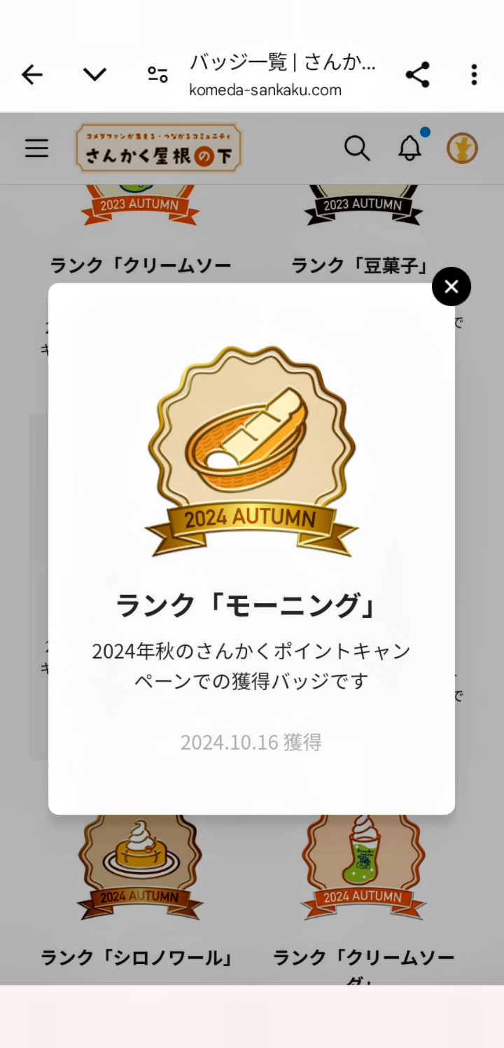 トップ > コメダ写真館 > ランクアップしました ノブ 2024/10/16 14:28 ランクアップしました 意外と早くたどり着けました いいね 共有する 共有する X facebook LINE リンクをコピー コメントする 13 件の返信 (新着順) ミュートしたユーザーの投稿です。 投稿を表示 退会したユーザー 2024/10/17 11:52 ノブさん、おめでとう御座います🥳🎊㊗️ お疲れ様でした┌︎○︎ペコリ いいね 返信する ミュートしたユーザーの投稿です。 投稿を表示 ノブ 2024/10/17 14:10 退会したユーザー ありがとうございます♥ いいね 返信する ミュートしたユーザーの投稿です。 投稿を表示 うさごん 2024/10/17 02:51 ノブさん、こんばんは😃。 🎉㊗️モーニングバッジ獲得 おめでとうございます🎉🎉🎉 良い一日になりますように🥰。 いいね 返信する ミュートしたユーザーの投稿です。 投稿を表示 ノブ 2024/10/17 10:12 うさごん ありがとうございます♥ いいね 返信する ミュートしたユーザーの投稿です。 投稿を表示 アキ 2024/10/16 22:47 こんばんは✨ 早いです👀❕凄い… いいね 返信する ミュートしたユーザーの投稿です。 投稿を表示 ノブ 2024/10/17 10:12 アキ ありがとうございます♥ いいね 返信する ミュートしたユーザーの投稿です。 投稿を表示 🟠さっちゃん🟠 2024/10/16 20:45 モーニングバッジ獲得 おめでとうございます😊 いいね 返信する ミュートしたユーザーの投稿です。 投稿を表示 ノブ 2024/10/16 22:34 🟠さっちゃん🟠 ありがとうございます♥ いいね 返信する ミュートしたユーザーの投稿です。 投稿を表示 M .N 13 2024/10/16 20:37 おめでとうございます✨️😆! いいね 返信する ミュートしたユーザーの投稿です。 投稿を表示 ノブ 2024/10/16 22:34 M .N 13 ありがとうございます♥ いいね 返信する ミュートしたユーザーの投稿です。 投稿を表示 いちじく 2024/10/16 20:15 ノブ ノブさん🎉モーニングバッチおめでとうございます👏 いいね 返信する ミュートしたユーザーの投稿です。 投稿を表示 ノブ 2024/10/16 22:33 いちじく ありがとうございます♥ いいね 返信する ミュートしたユーザーの投稿です。 投稿を表示 ひーちゃん 2024/10/16 19:45 モーニングバッジおめでとうございます😊 すごいです😉 いいね 返信する ミュートしたユーザーの投稿です。 投稿を表示 ノブ 2024/10/16 22:33 ひーちゃん ありがとうございます♥ いいね 返信する ミュートしたユーザーの投稿です。 投稿を表示 くみ 2024/10/16 19:35 おめでとうございます✨ 中々辿り着けないです💦 いいね 返信する ミュートしたユーザーの投稿です。 投稿を表示 ノブ 2024/10/16 22:33 くみ ありがとうございます♥ 気付いたら辿り着いてますよ♥ いいね 返信する ミュートしたユーザーの投稿です。 投稿を表示 りこ 2024/10/16 18:50 『モーニング』バッチ👏 おめでとうございます🎊 いいね 返信する ミュートしたユーザーの投稿です。 投稿を表示 ノブ 2024/10/16 22:33 りこ ありがとうございます♥ いいね 返信する ミュートしたユーザーの投稿です。 投稿を表示 イニム 2024/10/16 18:17 モーニングバッジ獲得✨ おめでとうございます👏👏👏 いいね 返信する ミュートしたユーザーの投稿です。 投稿を表示 ノブ 2024/10/16 22:32 イニム ありがとうございます♥ いいね 返信する もっと見る